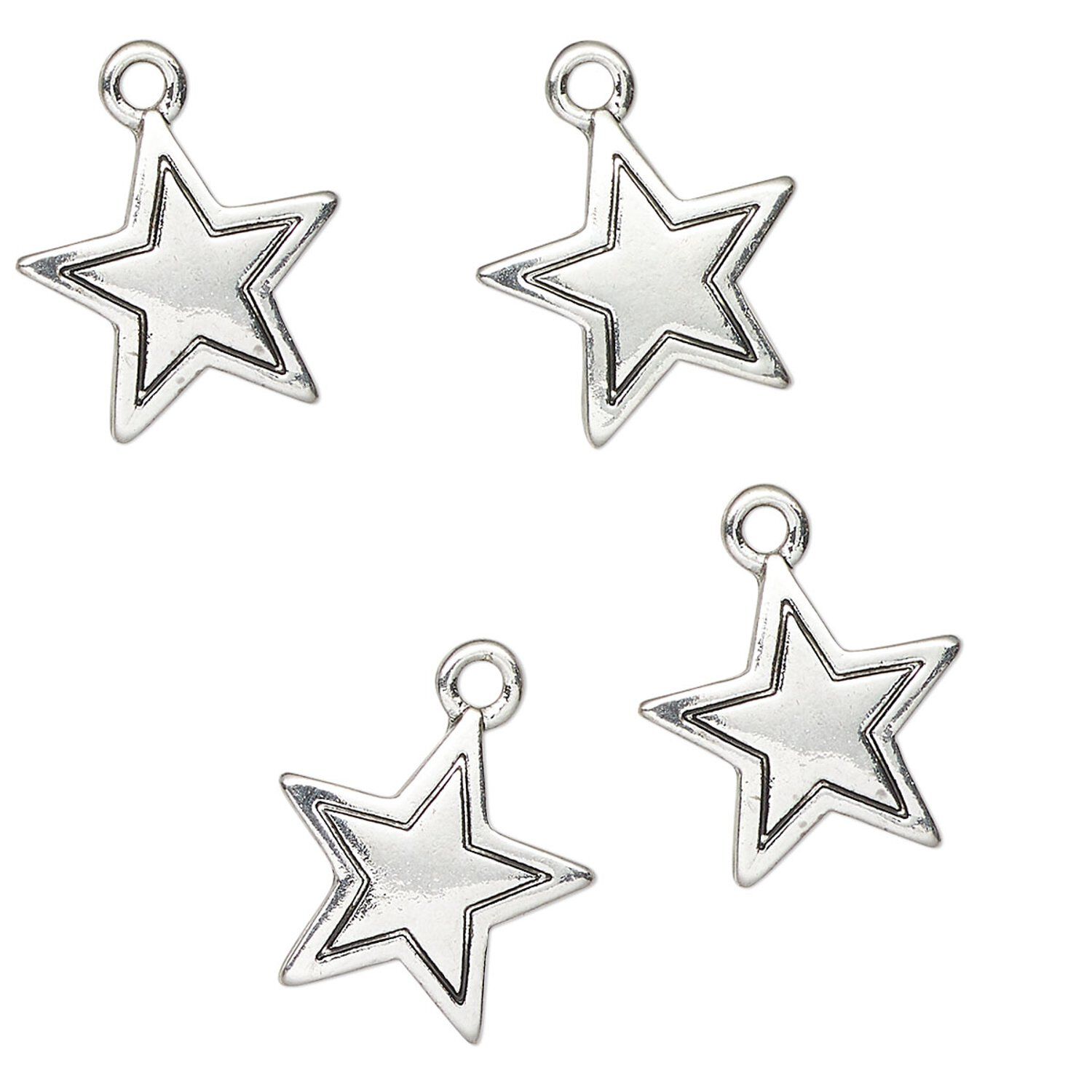Charm, antique silver-finished "pewter" (zinc-based alloy), 15x14mm star. Sold per pkg of 4.