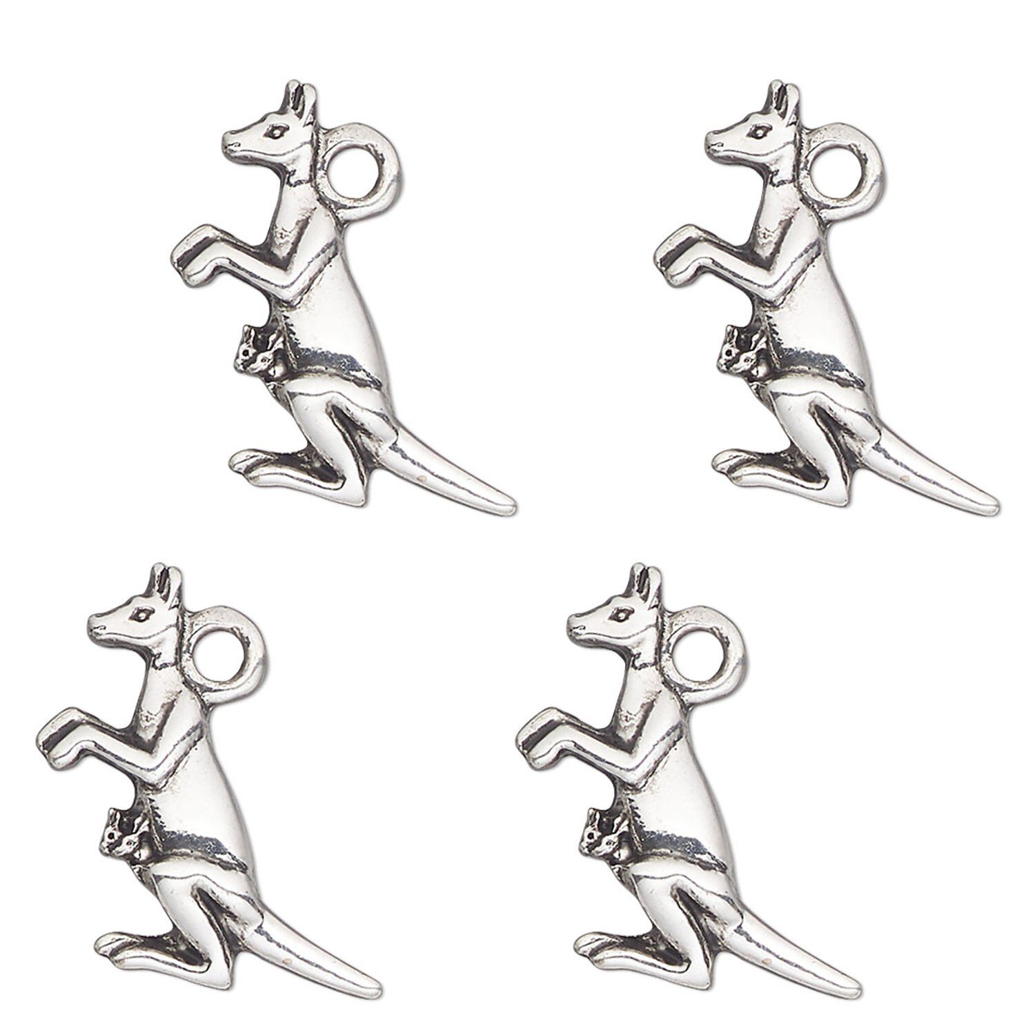 Charm, antique silver-finished "pewter" (zinc-based alloy) , 18x14mm single-sided kangaroo. Sold per pkg of 4.
