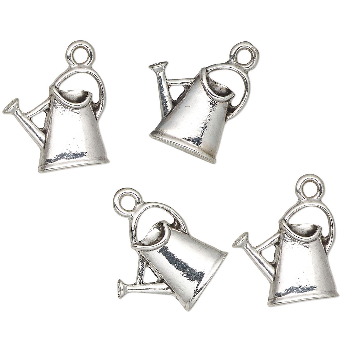 Charm, antique silver-finished "pewter" (zinc-based alloy), 16x15mm watering can. Sold per pkg of 4.