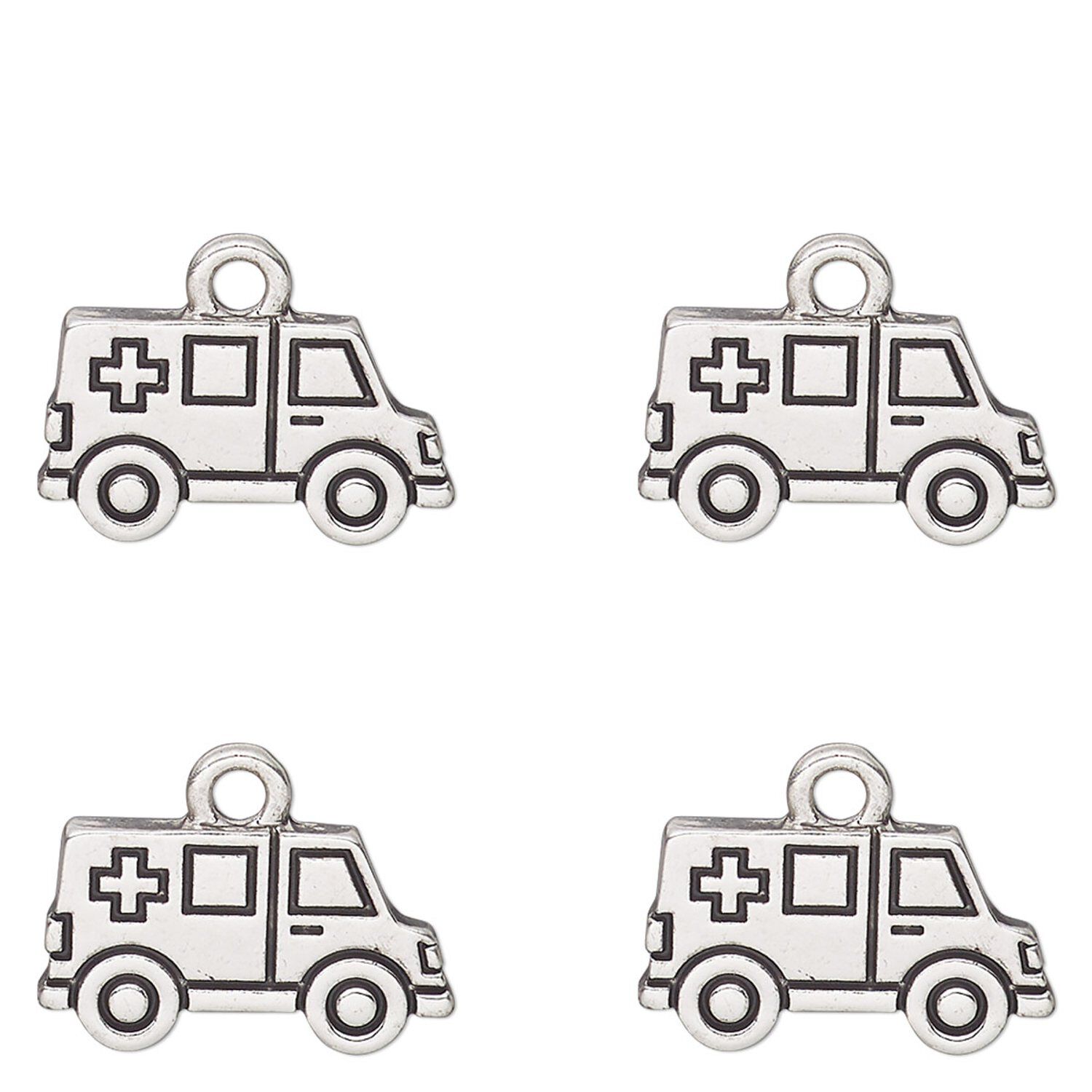 Antique silver-finished ambulance charms feature crisp casting and clever details. These single-sided charms are ideal to use in themed jewelry designs for customers in the medical field and make eye-catching additions to resale lines.