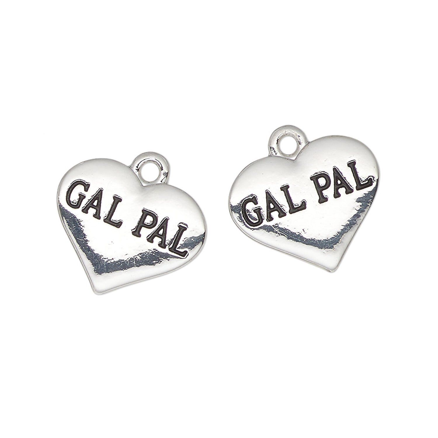 Charm, antique silver-finished enamel "pewter" (zinc-based alloy), black, 16x13mm heart with "Gal Pal". Sold per pkg of 2.