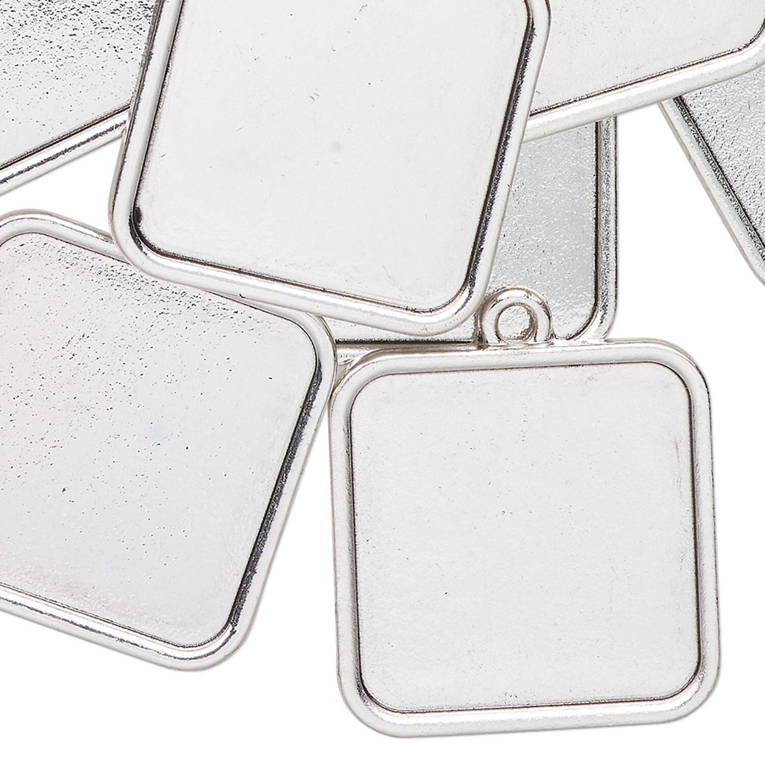 Drop, antique silver finish "pewter" (zinc-based alloy), 23x23mm square with 19.5mm square setting. Sold per pkg of 12.
