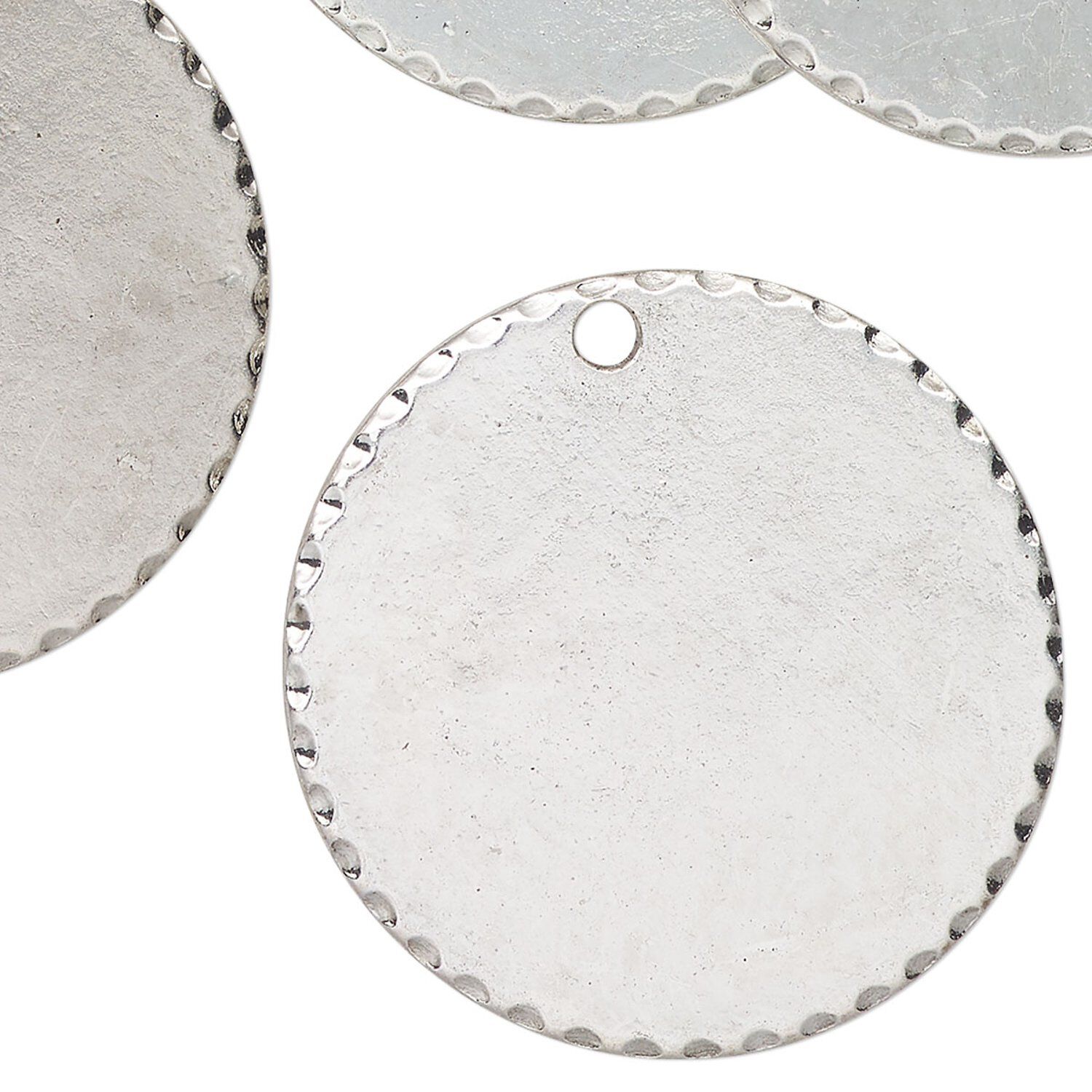 Drop, antique silver finish "pewter" (zinc-based alloy), 32mm scalloped round. Sold per pkg of 12.