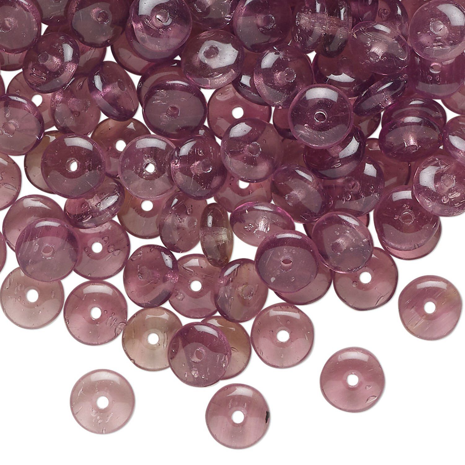 Bead, pressed glass, translucent purple, 6x3mm rondelle. Sold per 1-ounce pkg, approximately 210 beads.