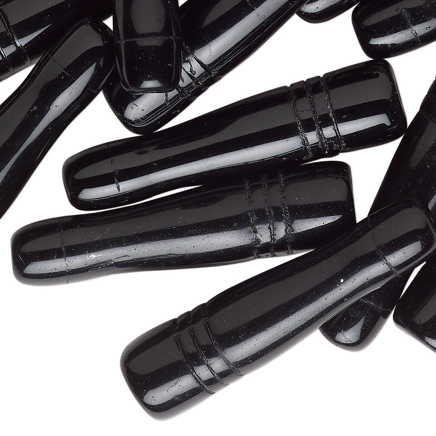 Bead, glass, opaque black, 33x8mm-36x9mm tapered capsule. Sold per 2-ounce pkg, approximately 15 beads.