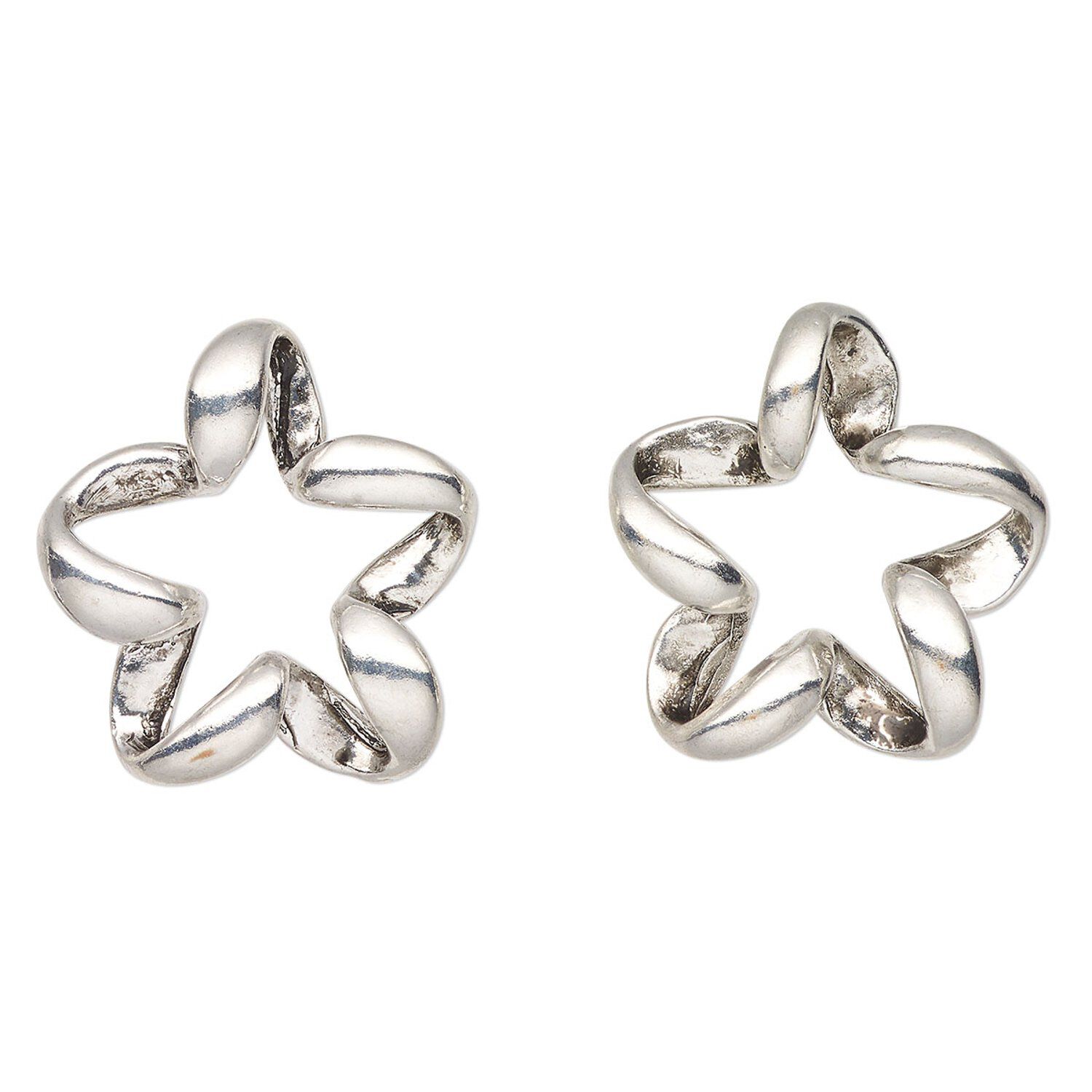 Focal, antique silver-finished "pewter" (zinc-based alloy), 30x28mm-32x32mm twisted open star. Sold per pkg of 2.