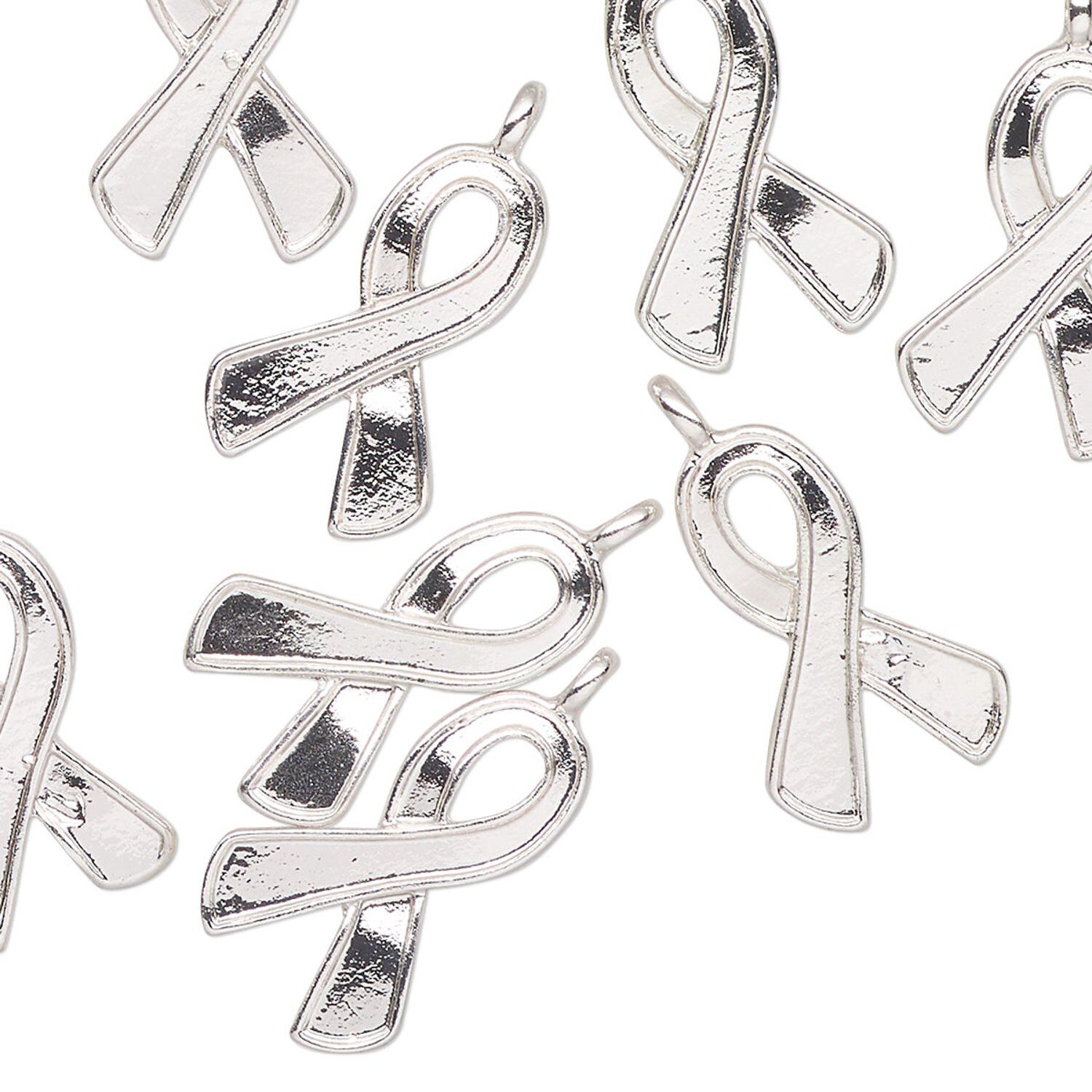 Charm, silver-finished "pewter" (zinc-based alloy), 17x11mm 2-sided awareness ribbon. Sold per pkg of 12.