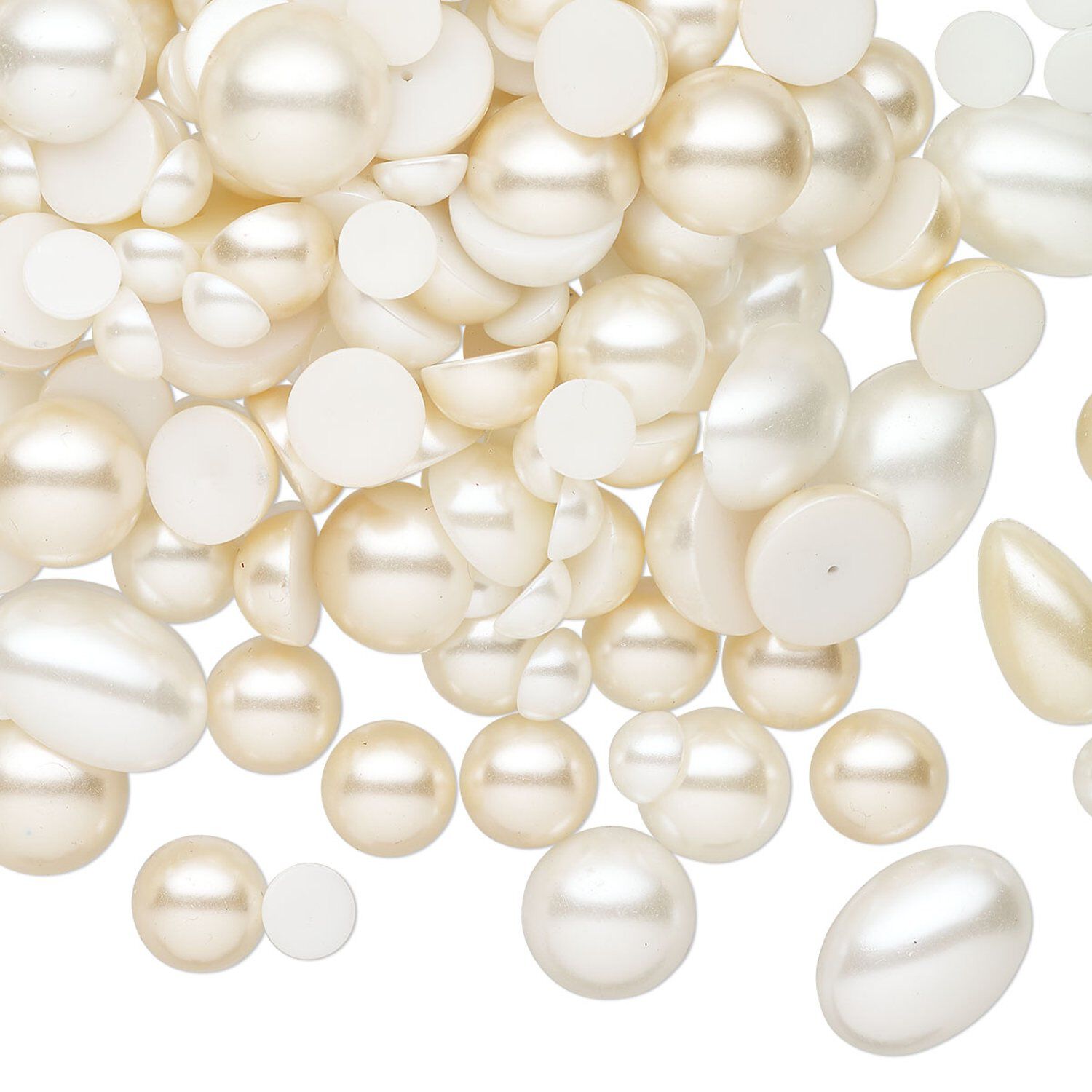 Cabochon, acrylic, cream, 10-20mm non-calibrated round and 14x8mm-24x18mm non-calibrated oval. Sold per 8-ounce pkg, approximately 355 pieces.