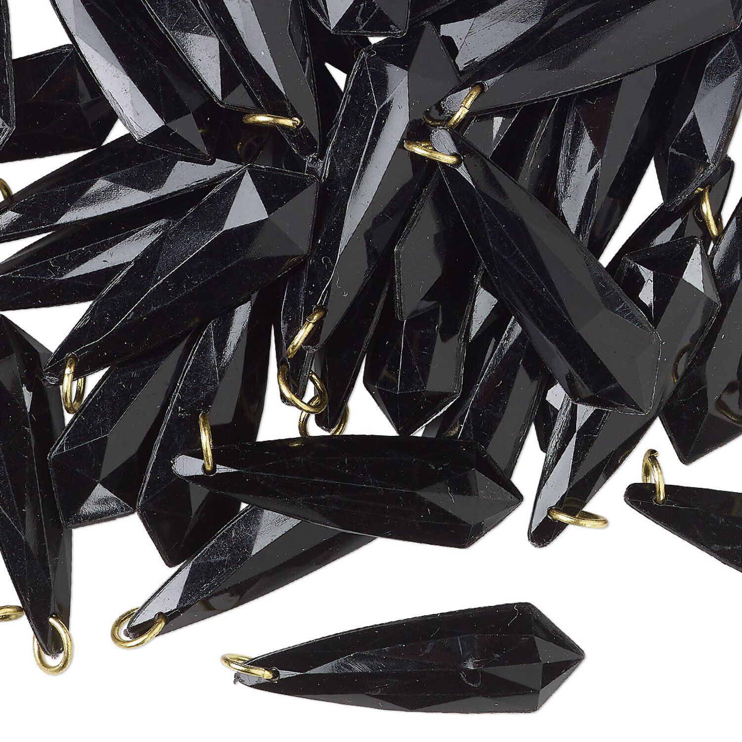 Focal, gold-finished brass and acrylic, black, 40x13mm faceted teardrop. Sold per pkg of 50.