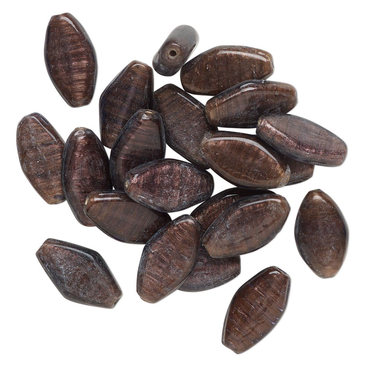 Bead, lampworked glass, translucent dark purple, 30x18mm-32x20mm flat marquise with copper-colored glitter. Sold per pkg of 20.