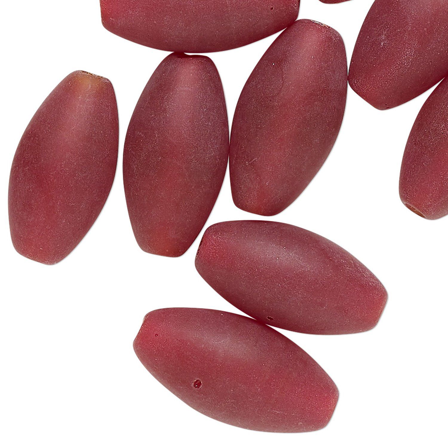 Bead, lampworked glass, translucent matte red, 20x10mm oval. Sold per 2-ounce pkg, approximately 20 beads.