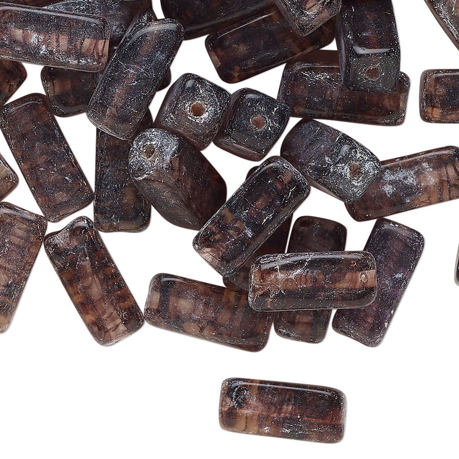 Bead, lampworked glass, translucent purple and black, 12x5mm square tube. Sold per 2-ounce pkg, approximately 75 beads.
