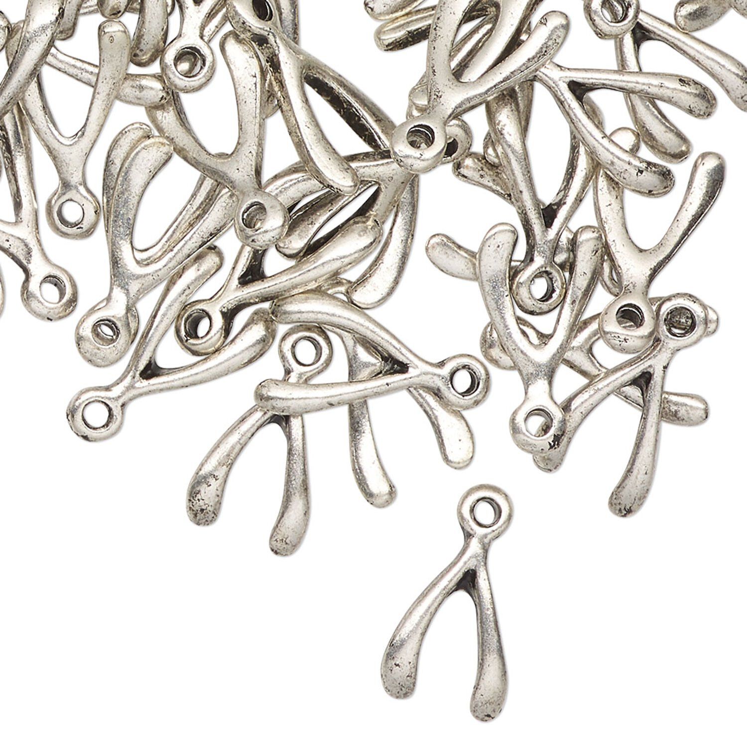 Charm, antique silver-finished "pewter" (zinc-based alloy), 11x8mm 3D wishbone. Sold per pkg of 50.