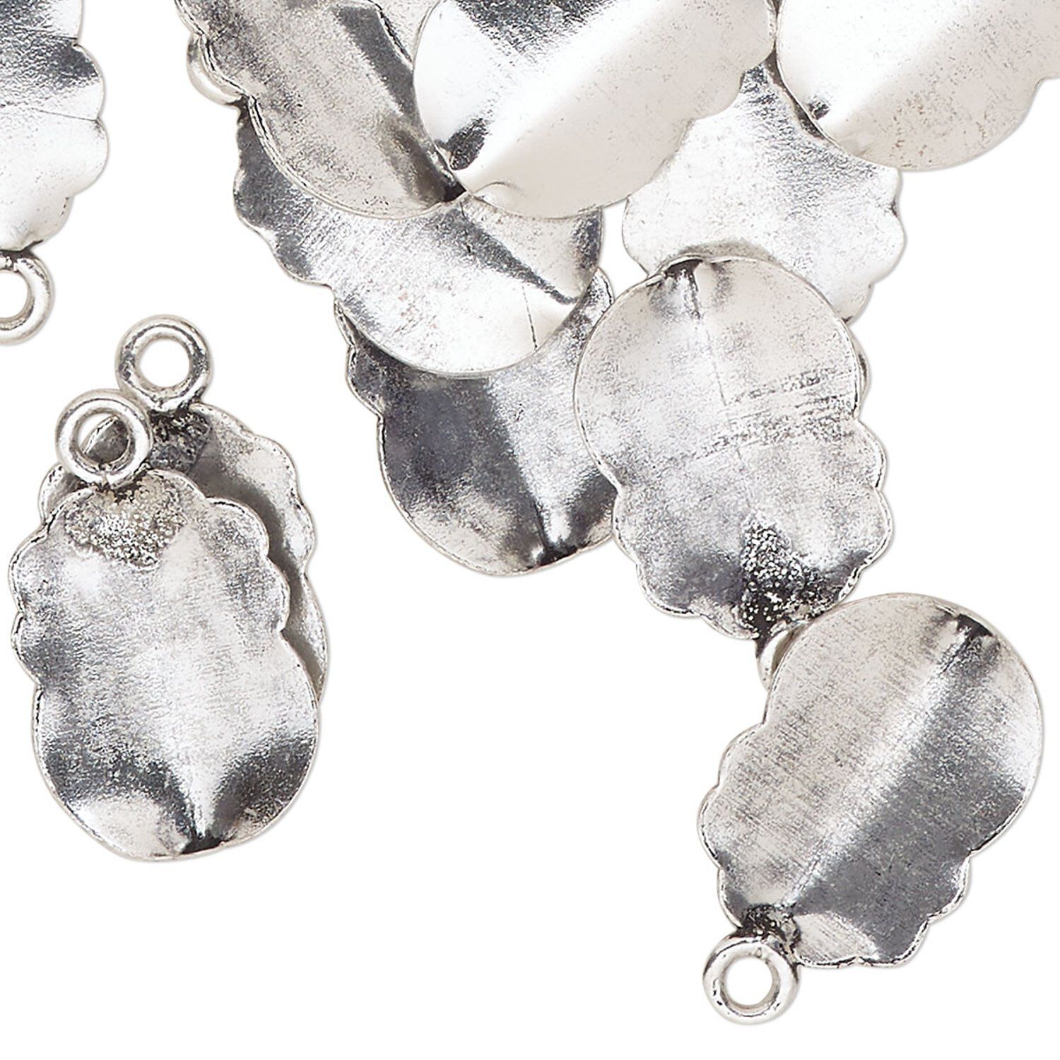Drop, antique silver-finished "pewter" (zinc-based alloy), 16x12mm two-sided creased fancy. Sold per pkg of 25.