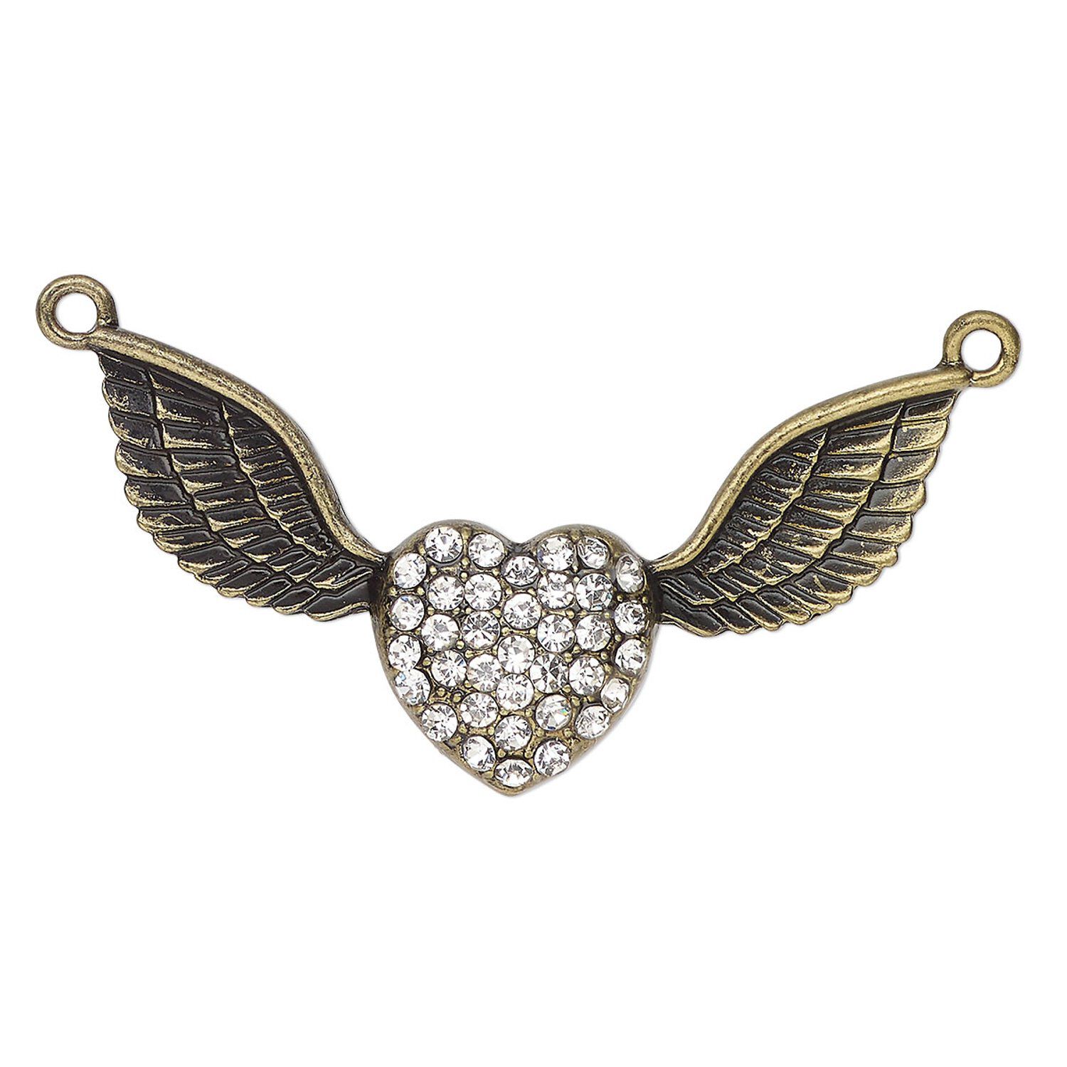 Focal, antique brass-finished "pewter" (zinc-based alloy) and glass, clear, 52x18mm heart with wings. Sold individually.