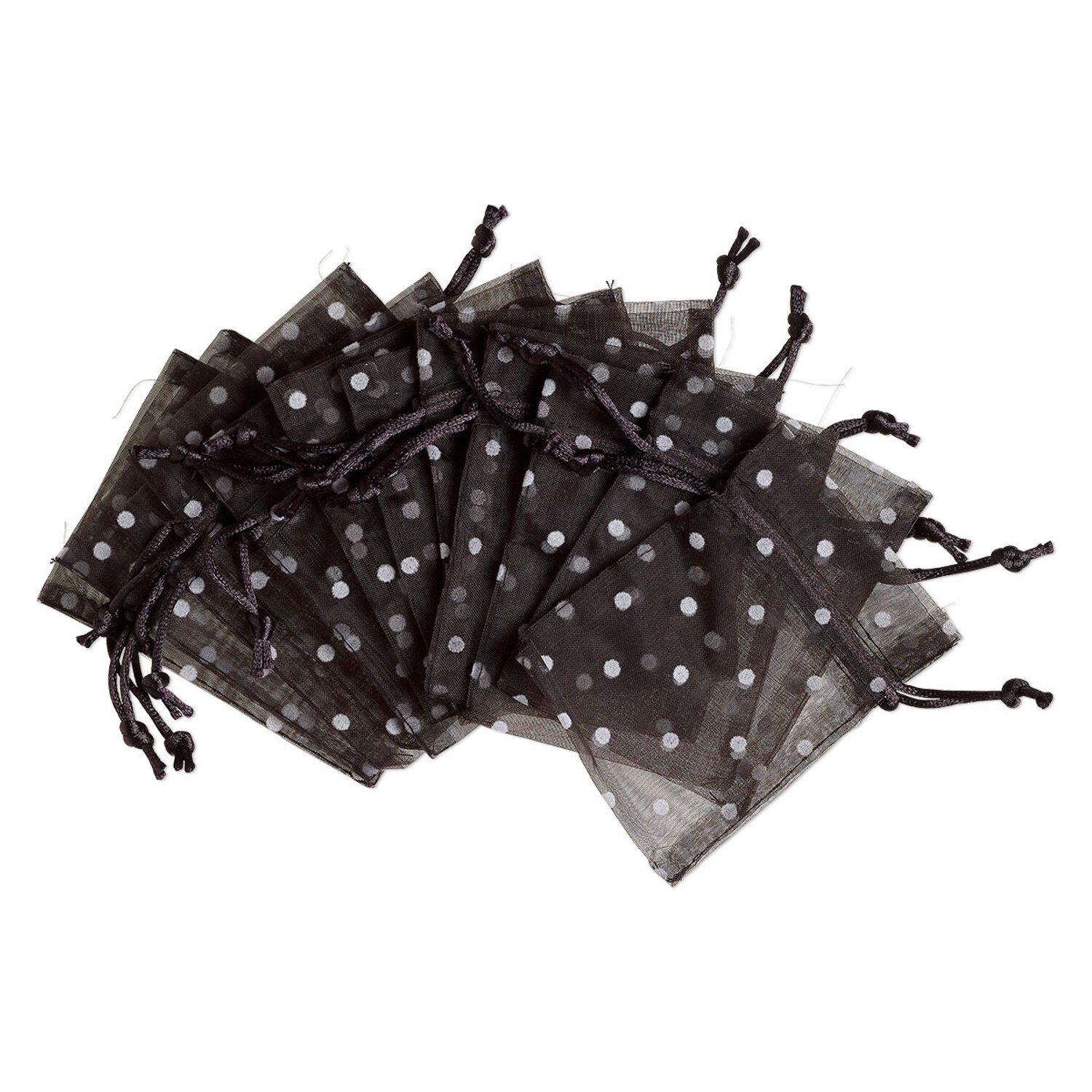 Pouch, flocked organza, black and white, 4x3 inches with dots pattern and drawstring closure. Sold per pkg of 12.