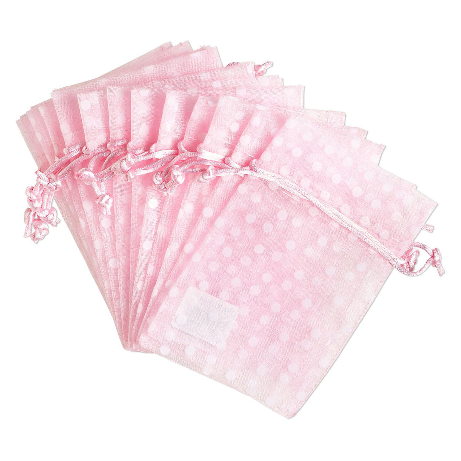 Pouch, flocked organza, pink and white, 6x4 inches with dots pattern and drawstring closure. Sold per pkg of 12.
