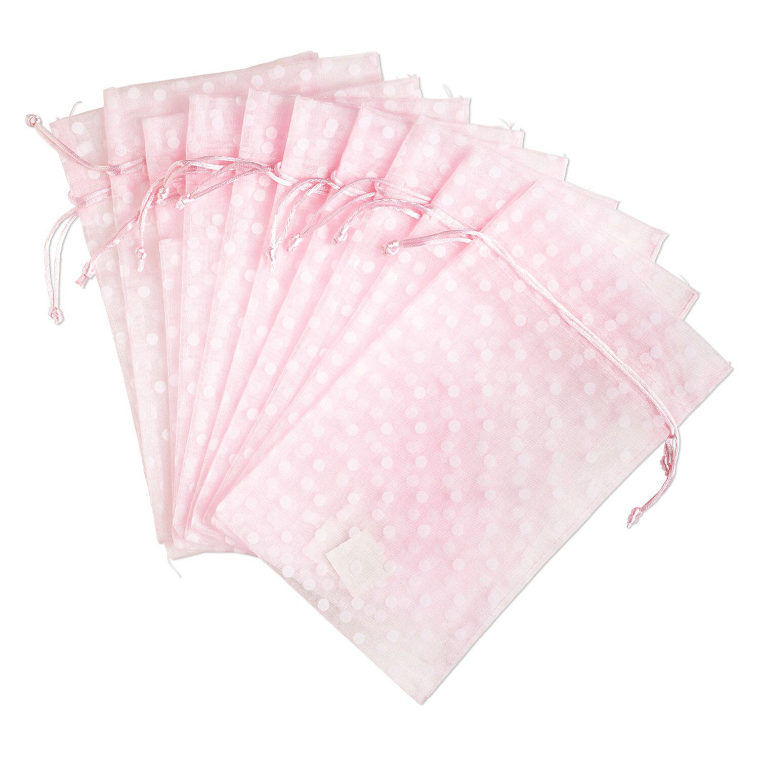 Pouch, flocked organza, pink and white, 10x6 inches with dots pattern and drawstring closure. Sold per pkg of 12.