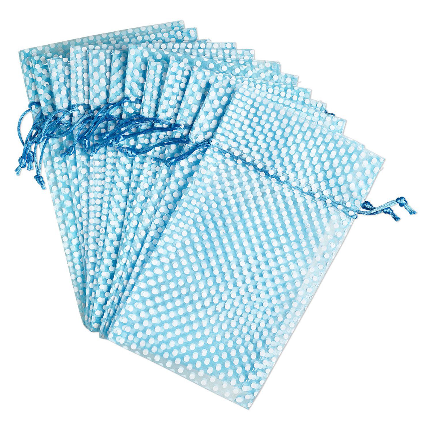 Pouch, organza, turquoise blue and white, 10x6 inches with dots pattern and drawstring closure. Sold per pkg of 12.