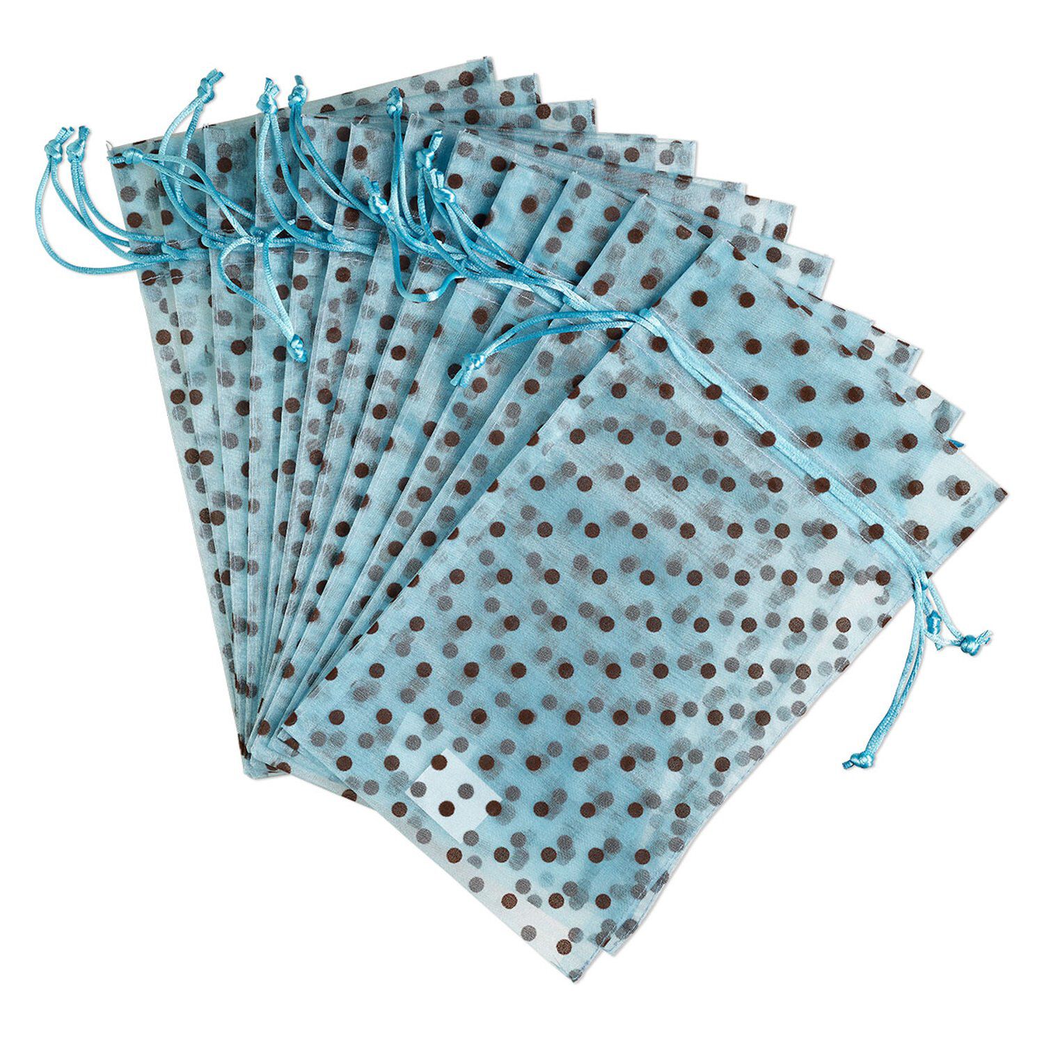 Pouch, flocked organza, robin's egg blue and brown, 10x6 inches with dots pattern and drawstring closure. Sold per pkg of 12.