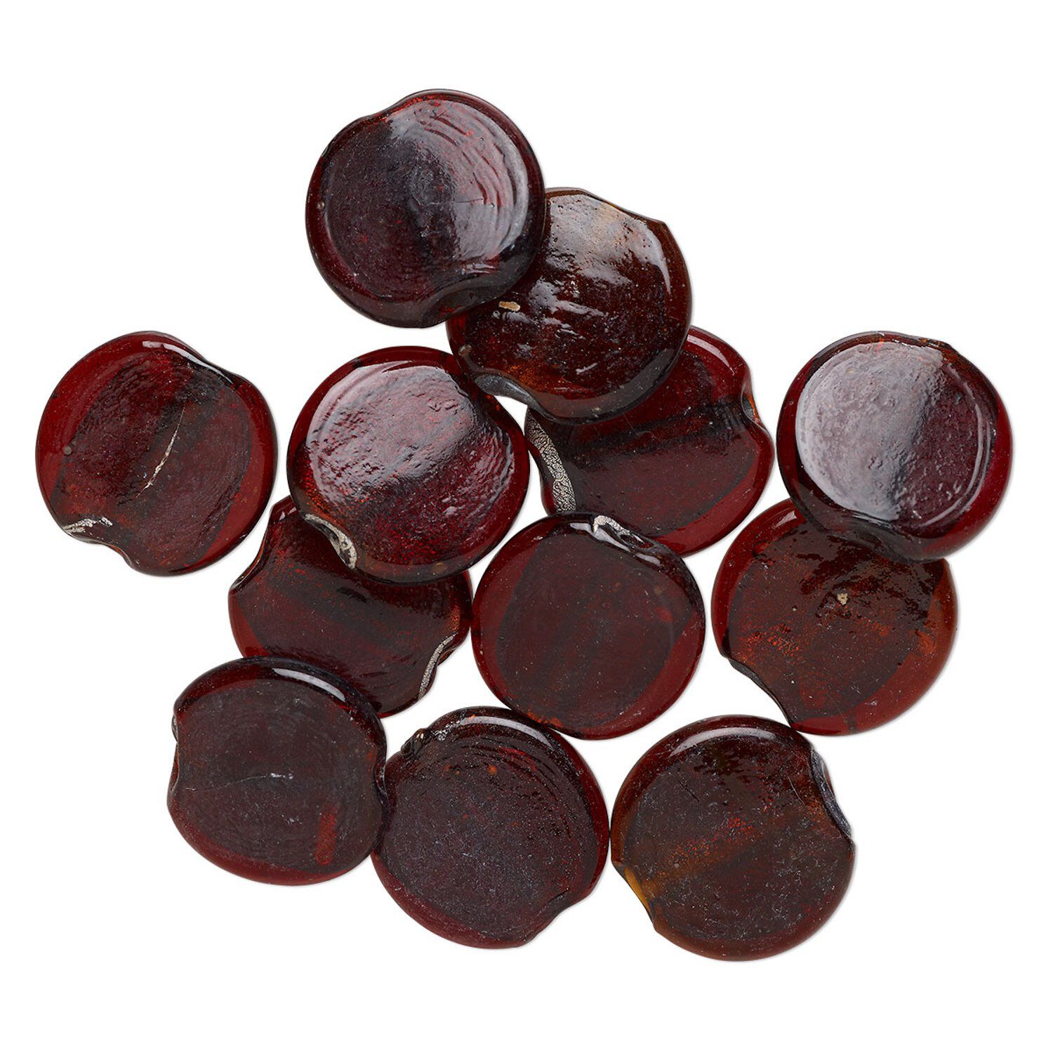 Bead, lampworked glass, translucent dark brown, 34-36mm flat round. Sold per pkg of 12.