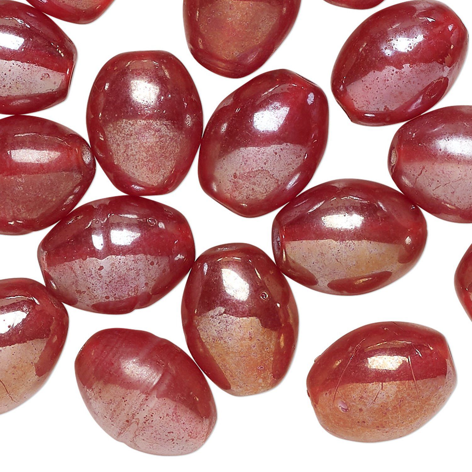 Bead, lampworked glass, translucent red luster, 13x10mm oval. Sold per 2-ounce pkg, approximately 25 beads.