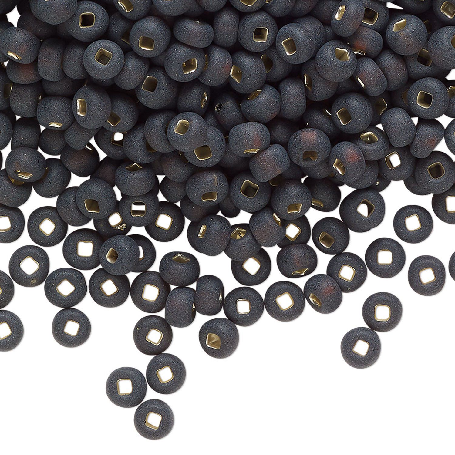 Seed bead, glass, pkg/50g, #6 round, opaque silver-lined matte rootbeer.
