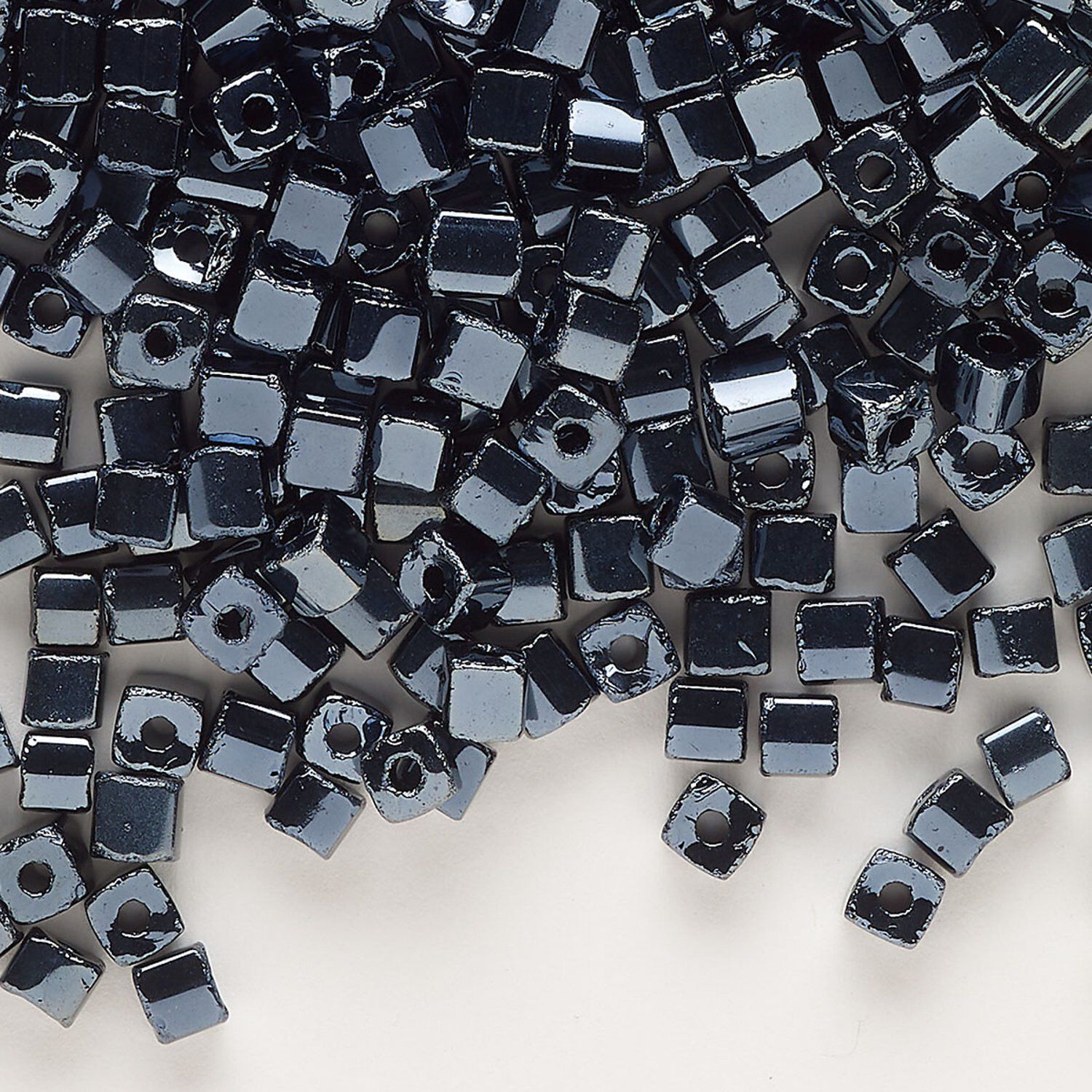 Seed bead, glass, pkg/50g, 3mm square, opaque gunmetal.