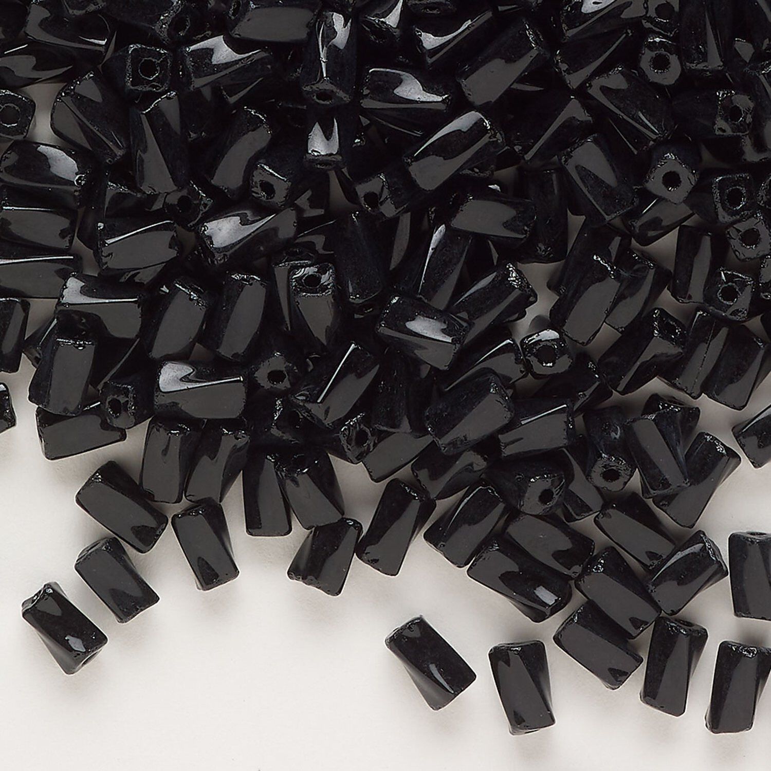 Bead, bugle bead, Czech glass, opaque black, 5x2mm twisted tube. Sold per 50-gram pkg.