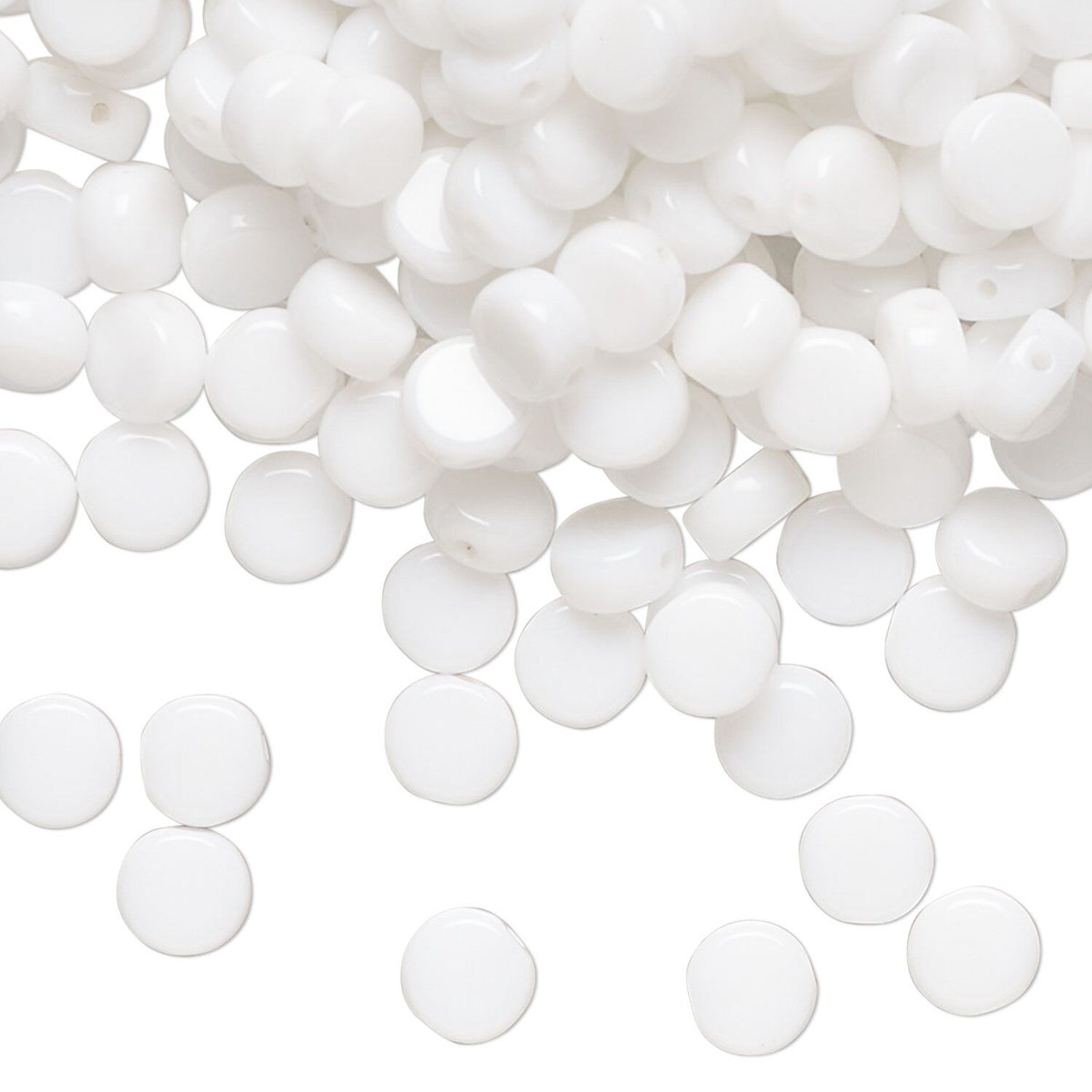 Bead, glass, opaque white, 5-6mm flat round. Sold per 2-ounce pkg, approximately 470 beads.