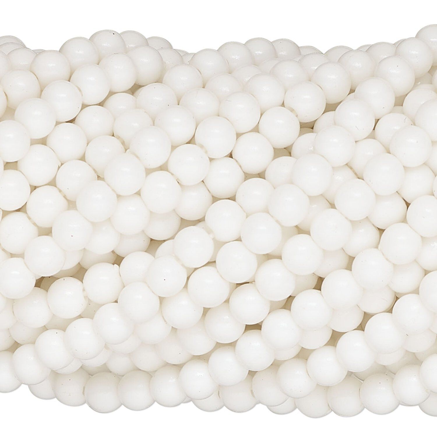 Bead, acrylic, white, 4mm round. Sold per pkg of 2 hanks, approximately 9,600 beads.