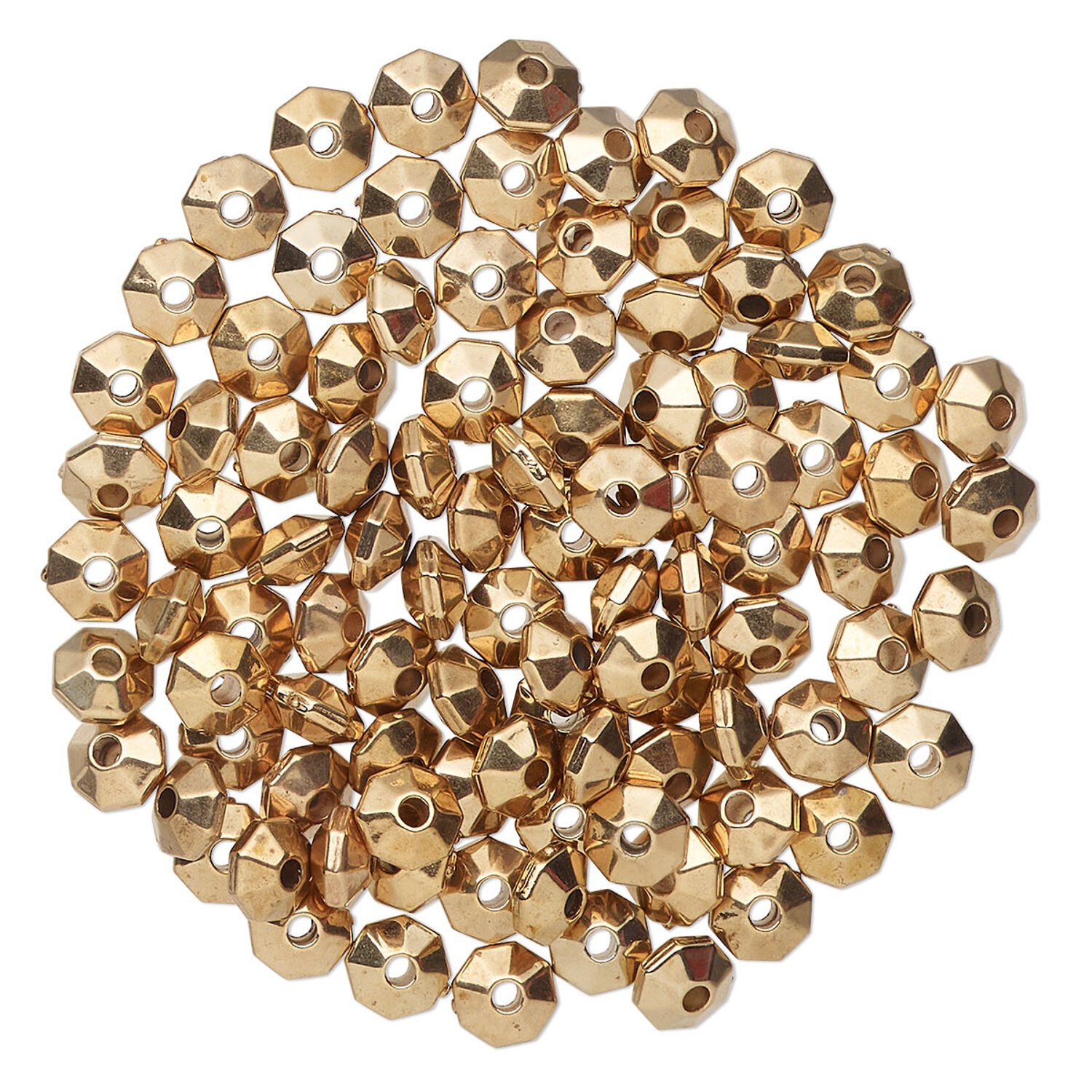 Bead, acrylic, gold, 6x3mm faceted saucer. Sold per pkg of 100.