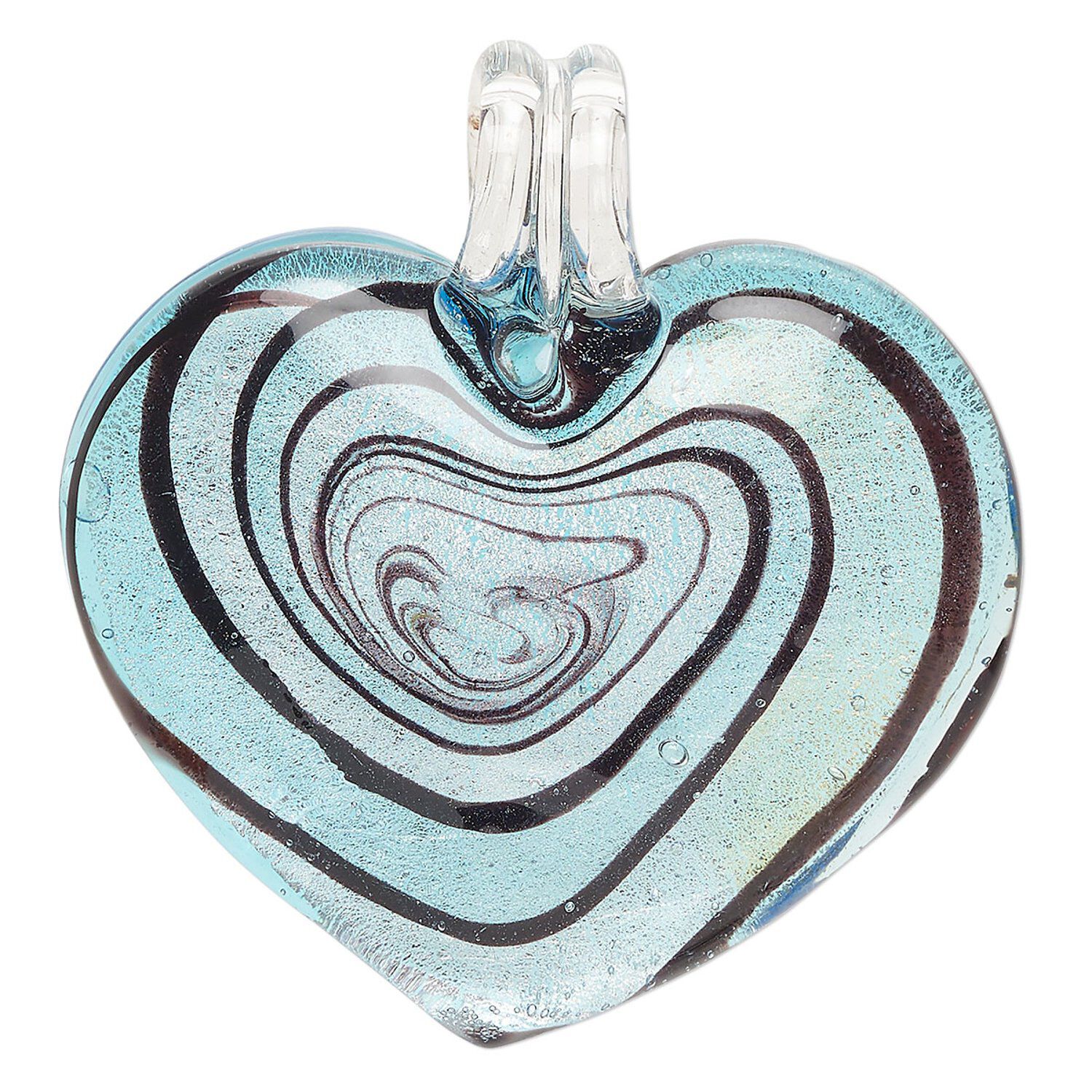 Focal, lampworked glass, opaque, 52x49mm-53x50mm heart with silver-colored foil and swirl design. Sold individually.