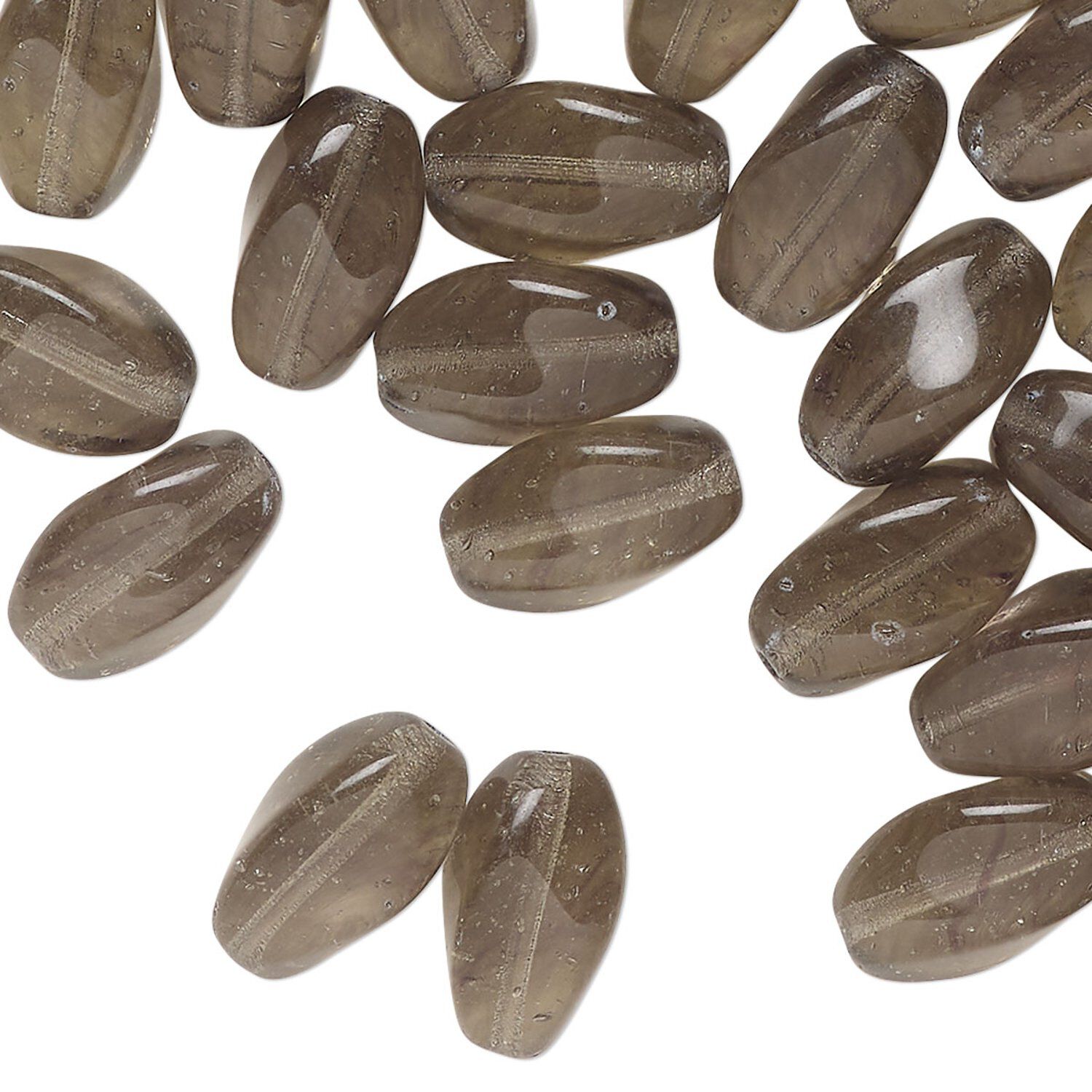 Bead, Czech pressed glass, translucent smoke grey, 12x7mm-12x9mm twisted oval. Sold per 2-ounce pkg, approximately 65 beads.