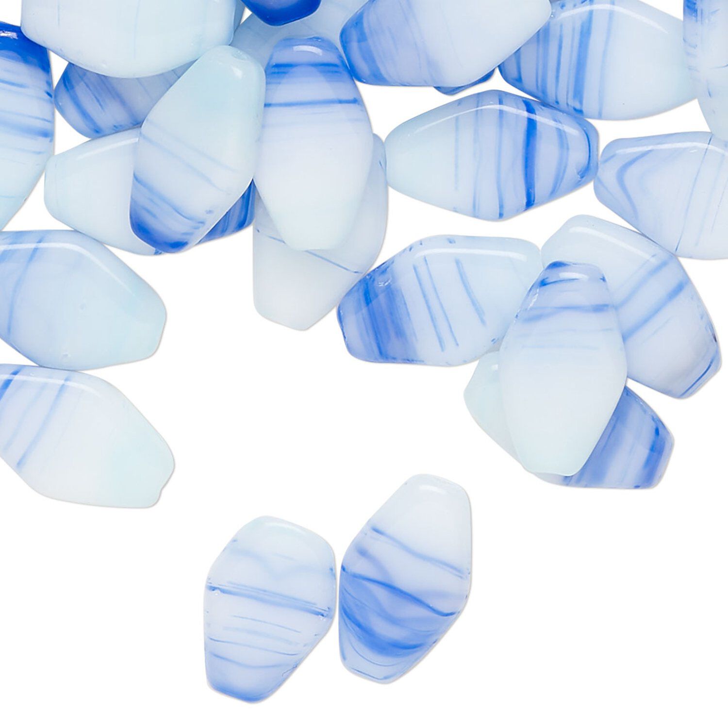 Bead, Czech pressed glass, translucent cobalt blue and light blue, 13x8mm flat marquise. Sold per 1-ounce pkg, approximately 60 beads.