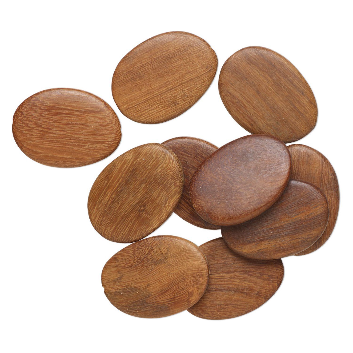 Bead, wood (dyed), walnut brown, 40x30mm-41x30mm flat oval. Sold per pkg of 10.