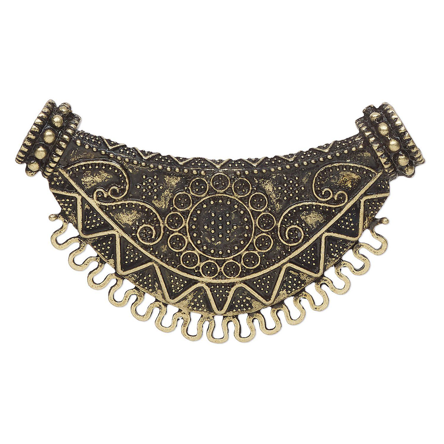 Connector, antique brass-finished brass, 64x38mm beaded crescent. Sold individually.