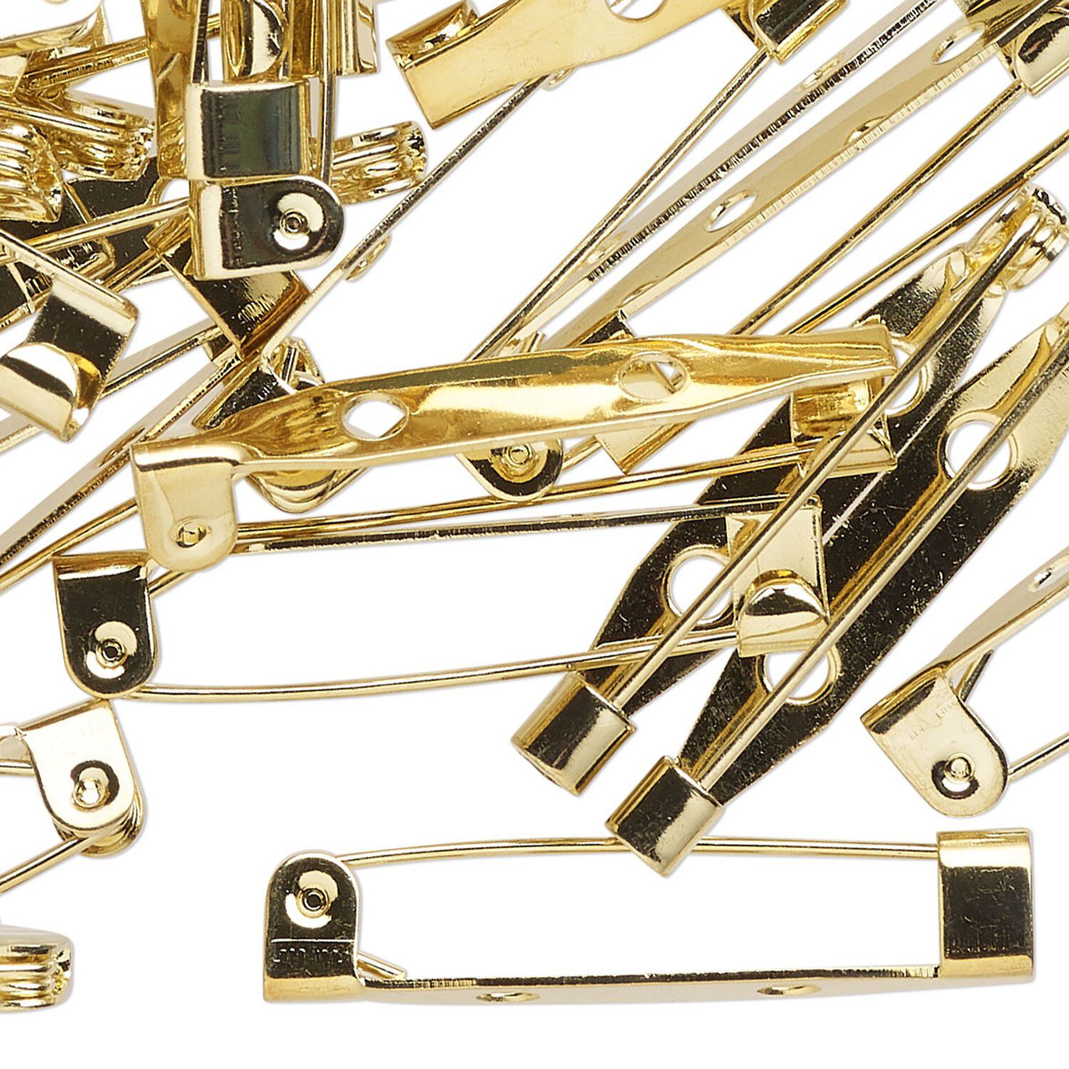 Pin back, gold-finished brass, 1-1/4 inches. Sold per pkg of 100.