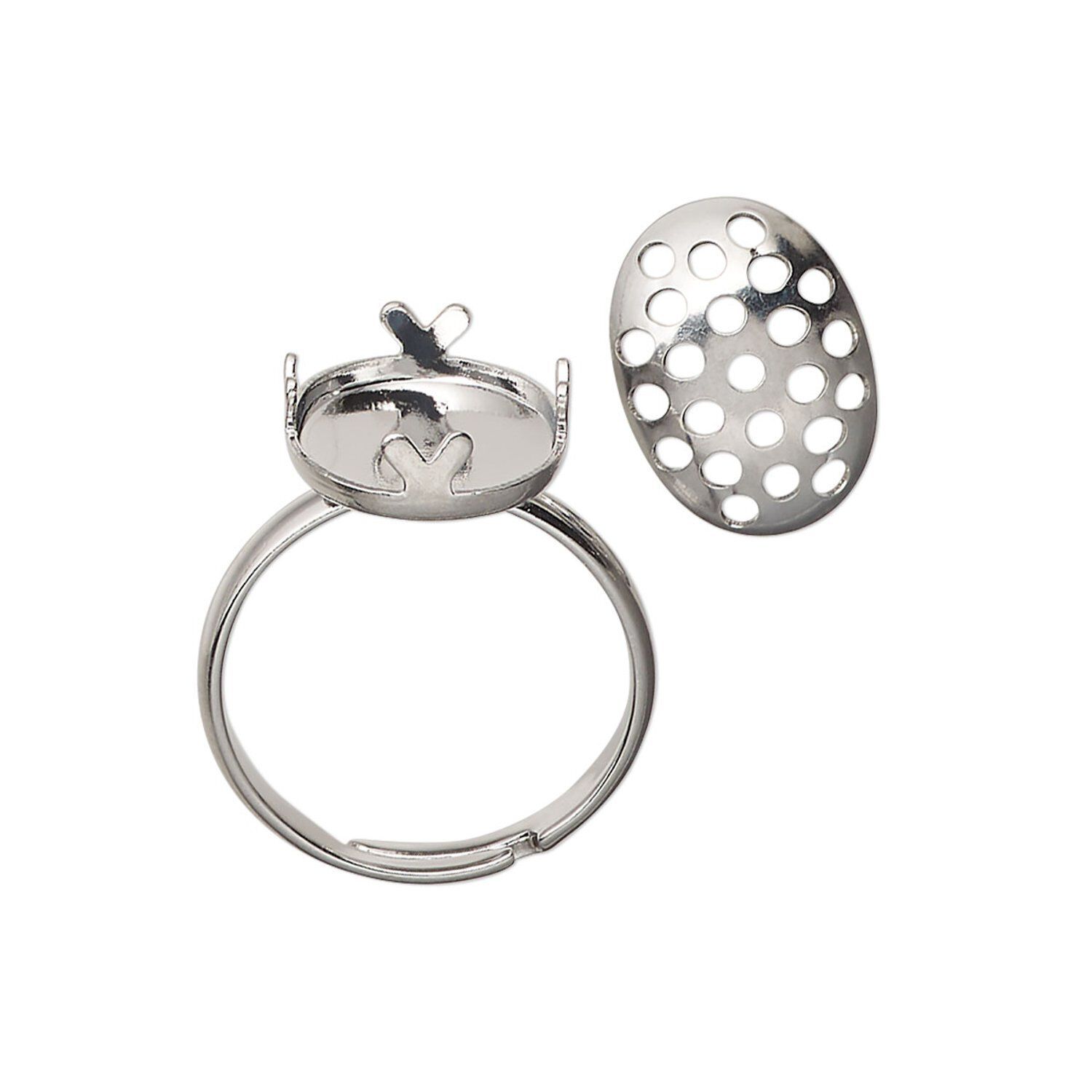 Ring, silver-finished brass, 14x10mm perforated oval disc. Sold individually.