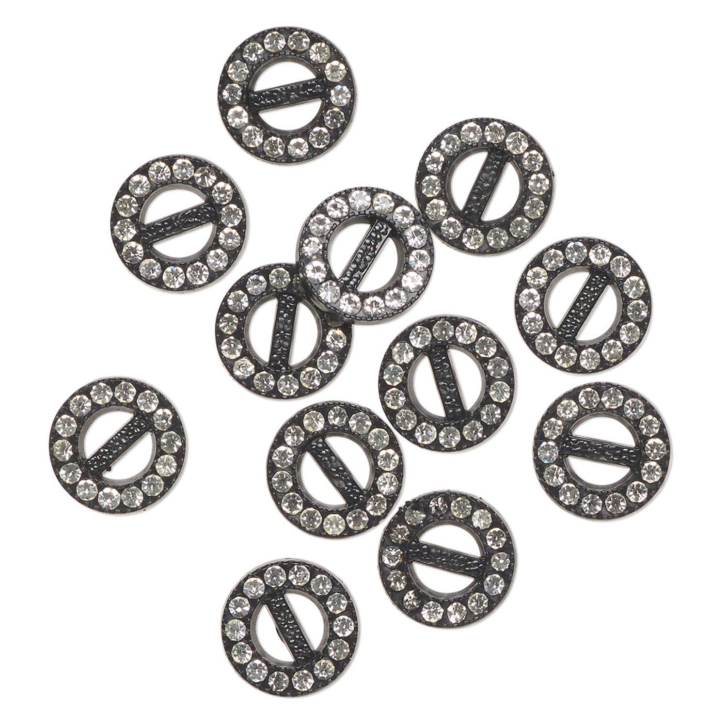 Component, plastic and glass, black and clear, 12mm round with 6.5mm bar. Sold per pkg of 12.