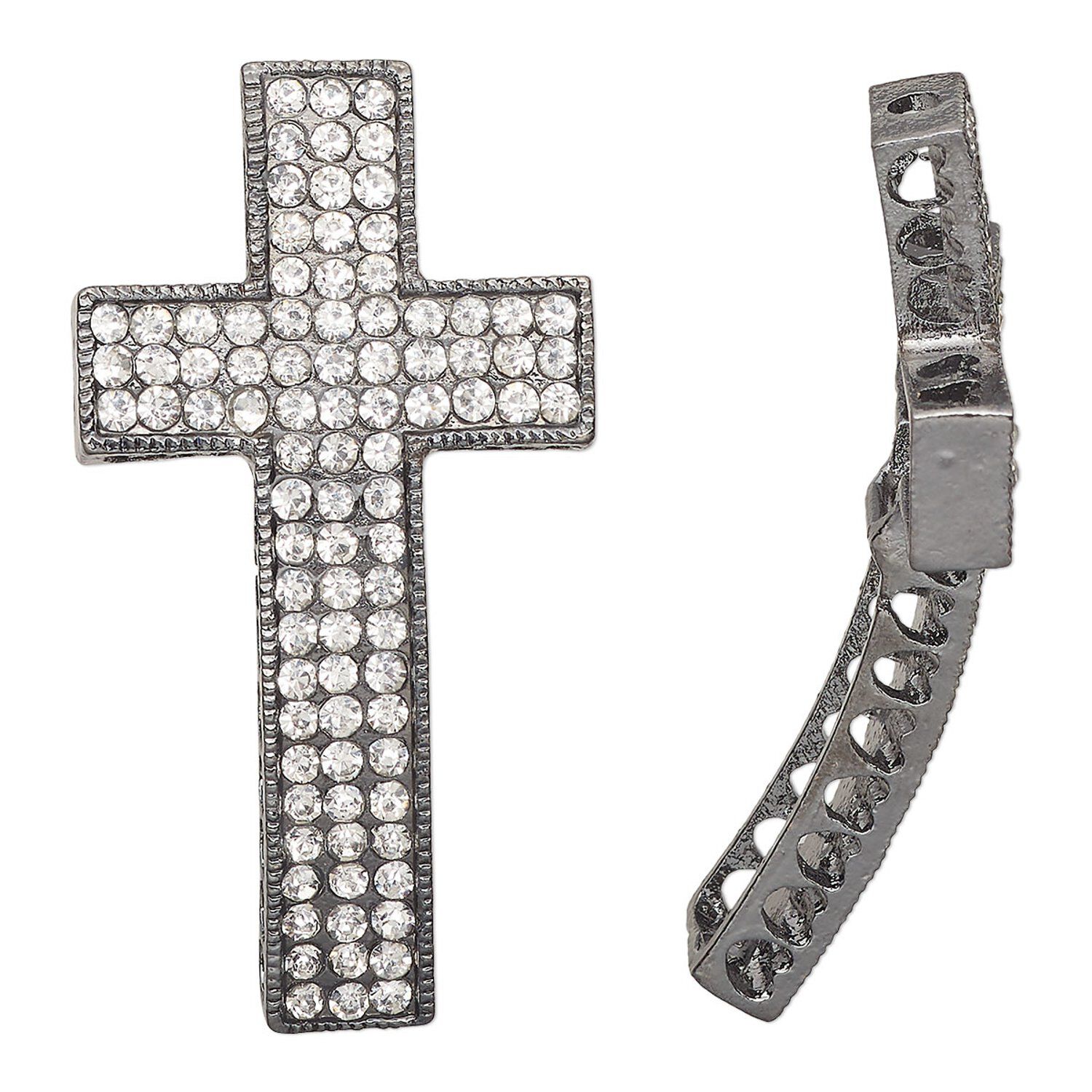 Focal, gunmetal-finished "pewter" (zinc-based alloy) and glass, clear, 48x26mm curved cross with (11) cutout hearts. Sold individually.