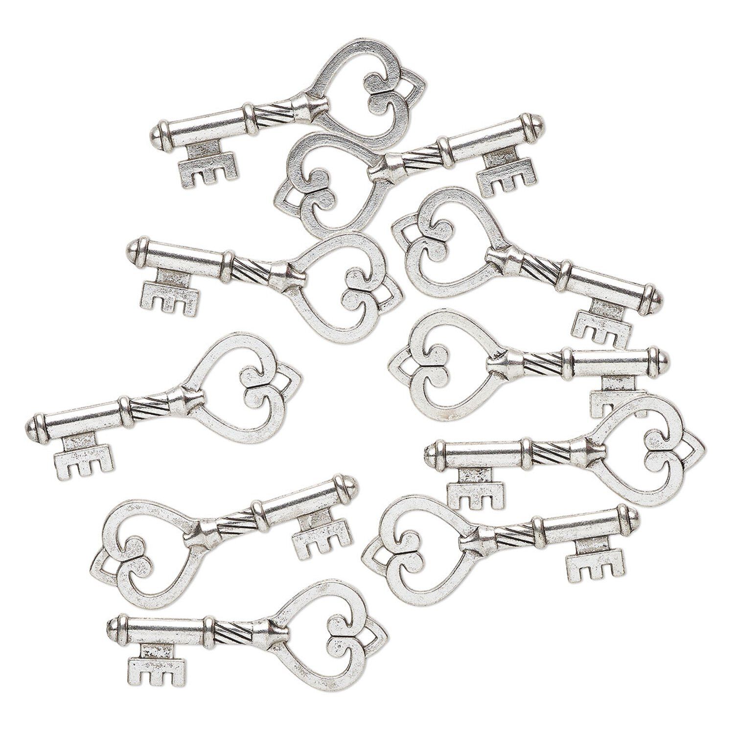 Focal, antique silver-finished "pewter" (zinc-based alloy), 43x19mm key with heart. Sold per pkg of 10.