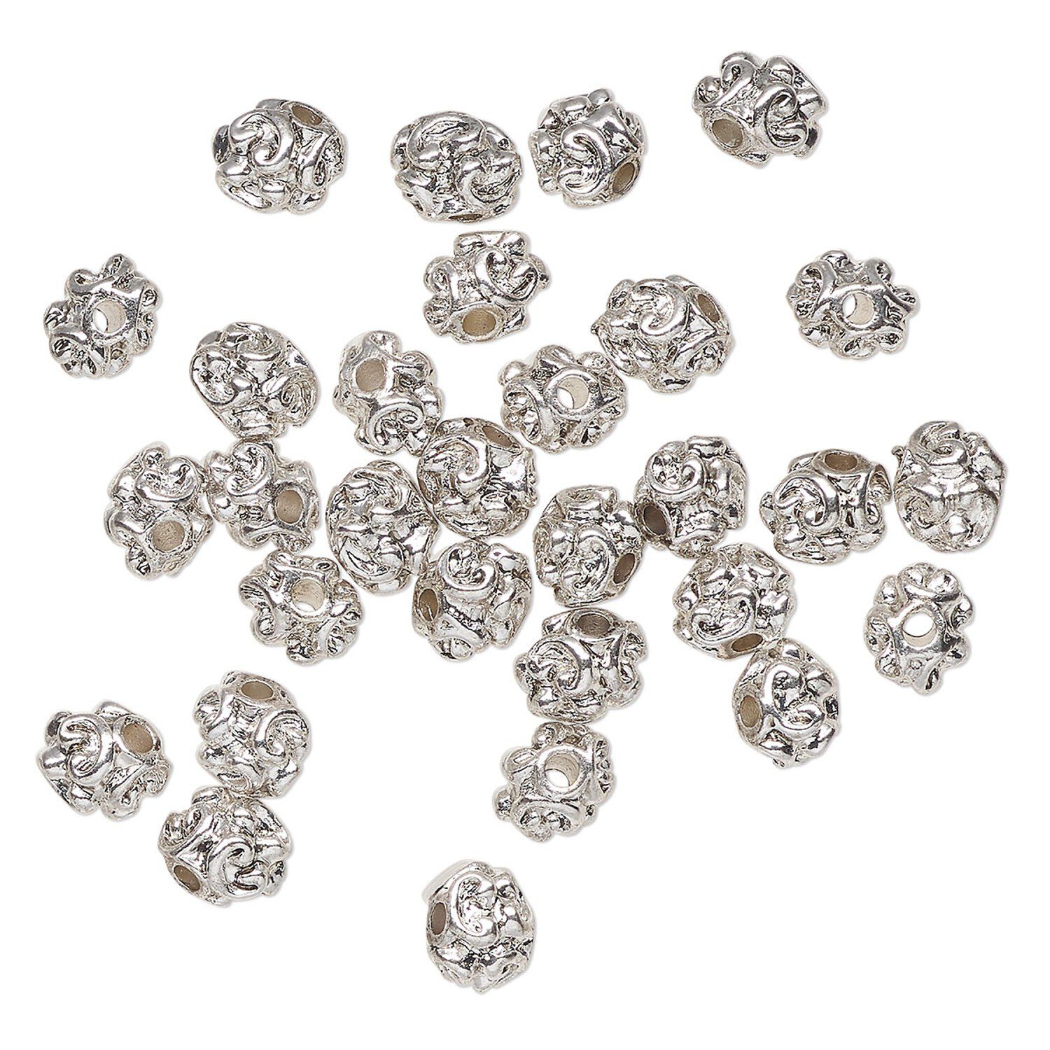 Bead 1pkg30 silver-finished "pewter", 7mm bumpy uneven round, antique