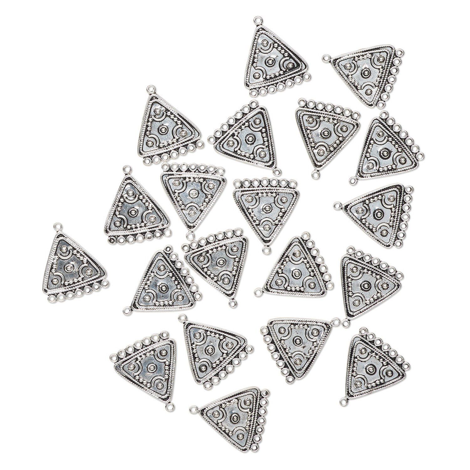 Connector, antique silver-finished "pewter" (zinc-based alloy), 22x19mm fancy triangle, 1 top / 7 bottom loops. Sold per pkg of 20.