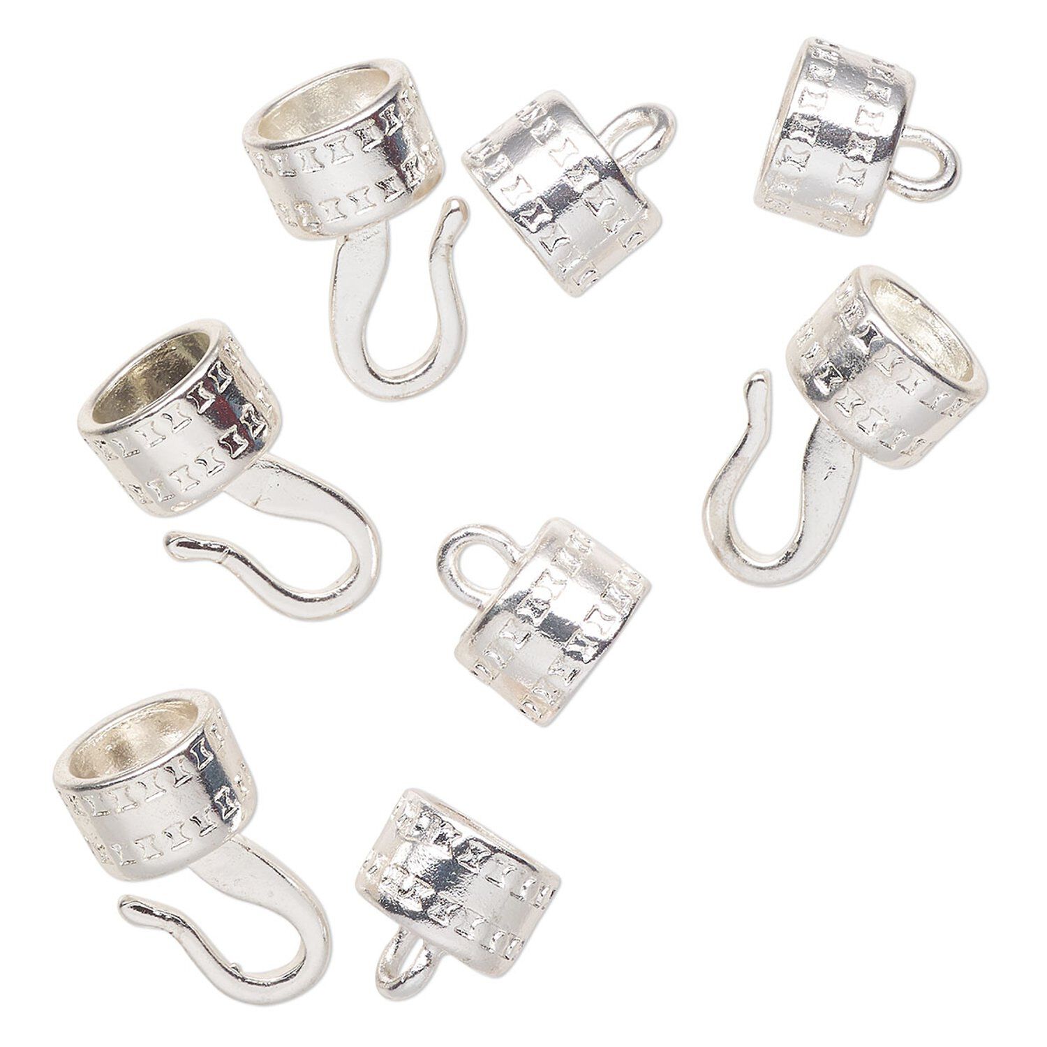 Clasp, hook-and-eye, silver-finished "pewter" (zinc-based alloy), 34x13.5mm with glue-in ends, 10mm inside diameter. Sold per pkg of 4.