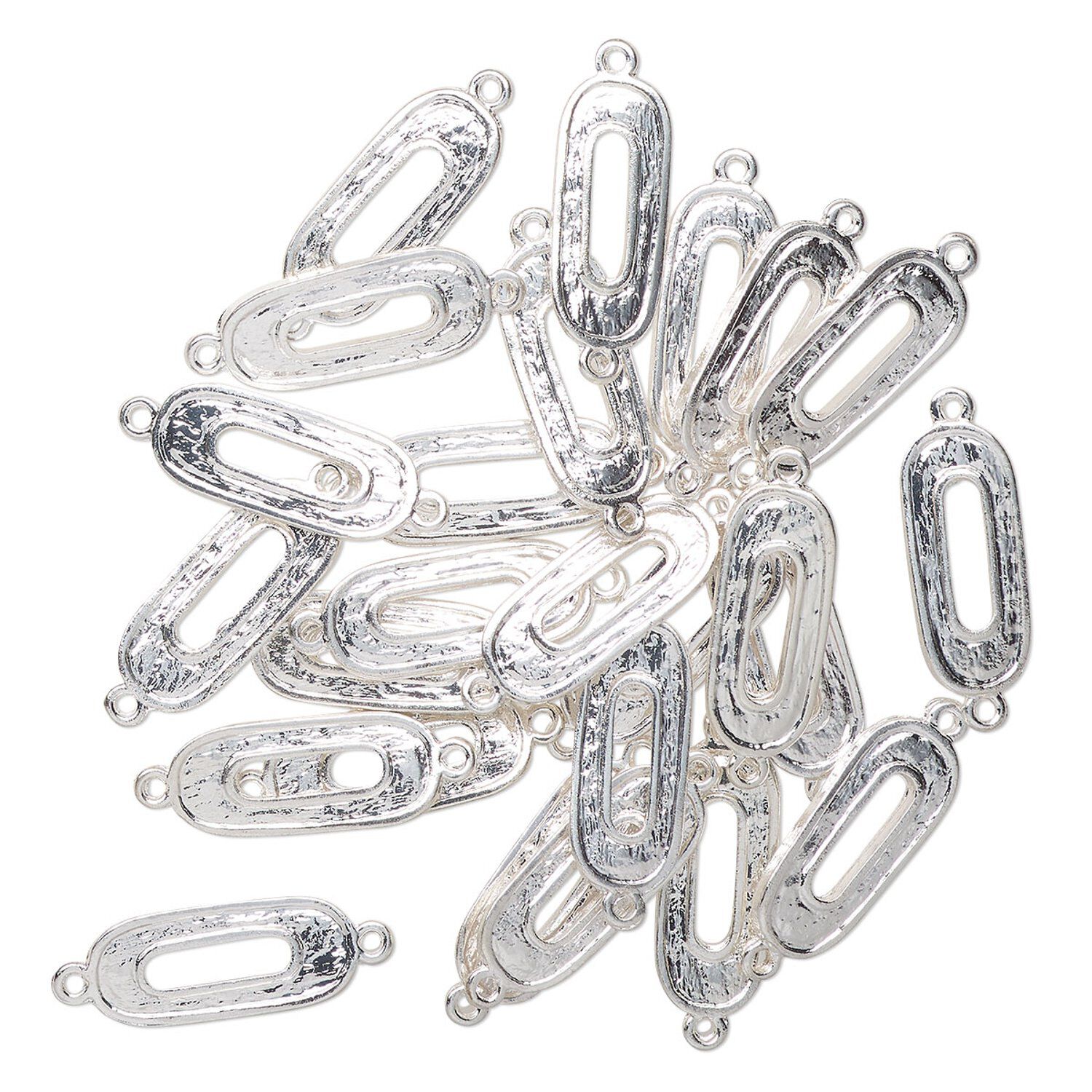 Link, silver-finished brass, 24x10mm twisted open oval. Sold per pkg of 25.