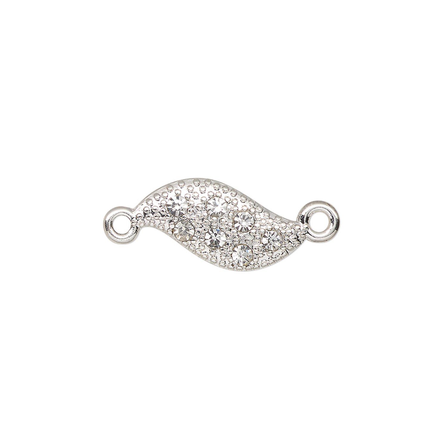 Link, silver-finished stainless steel and glass, clear, 18x9mm double-sided wave. Sold individually.