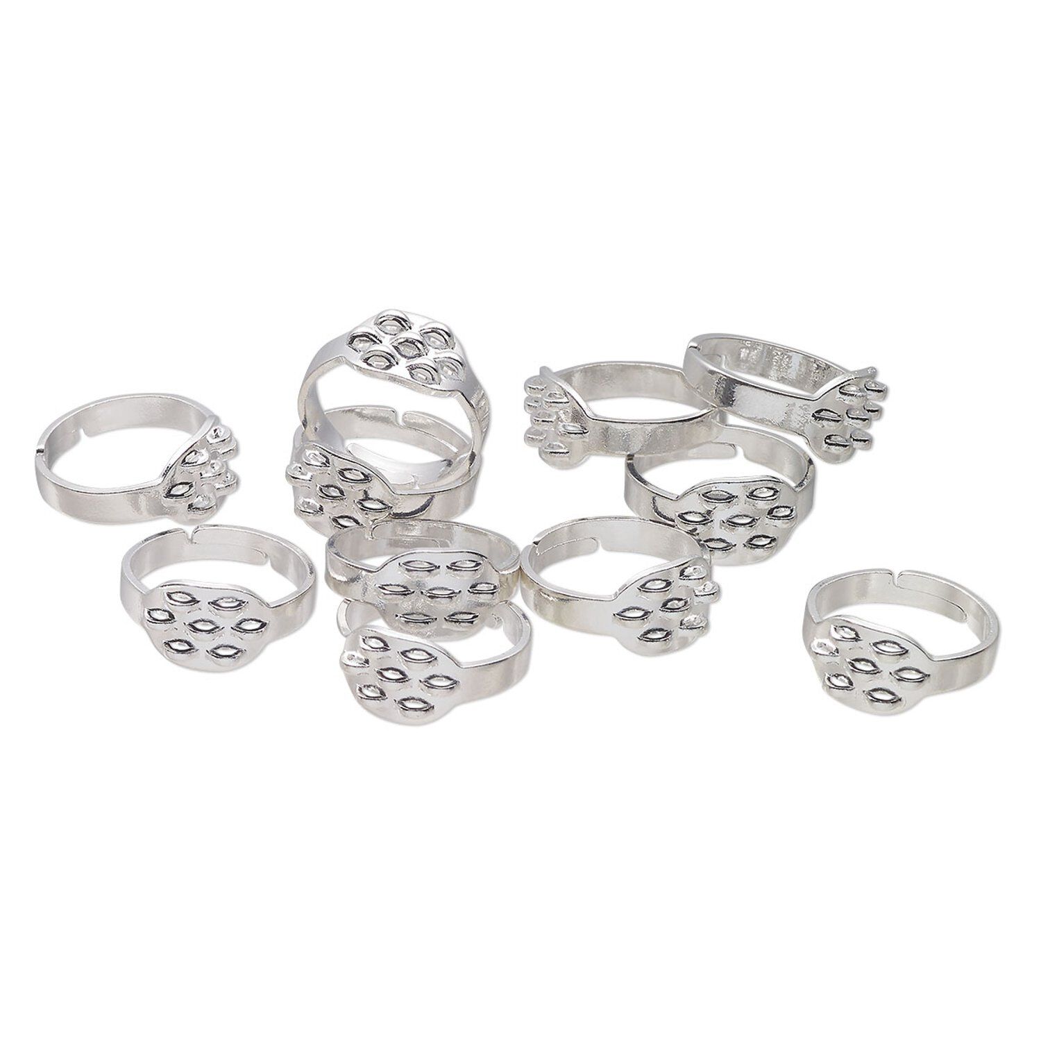 Ring, silver-finished brass, adjustable, 9.5mm with 7 loops. Sold per pkg of 12.