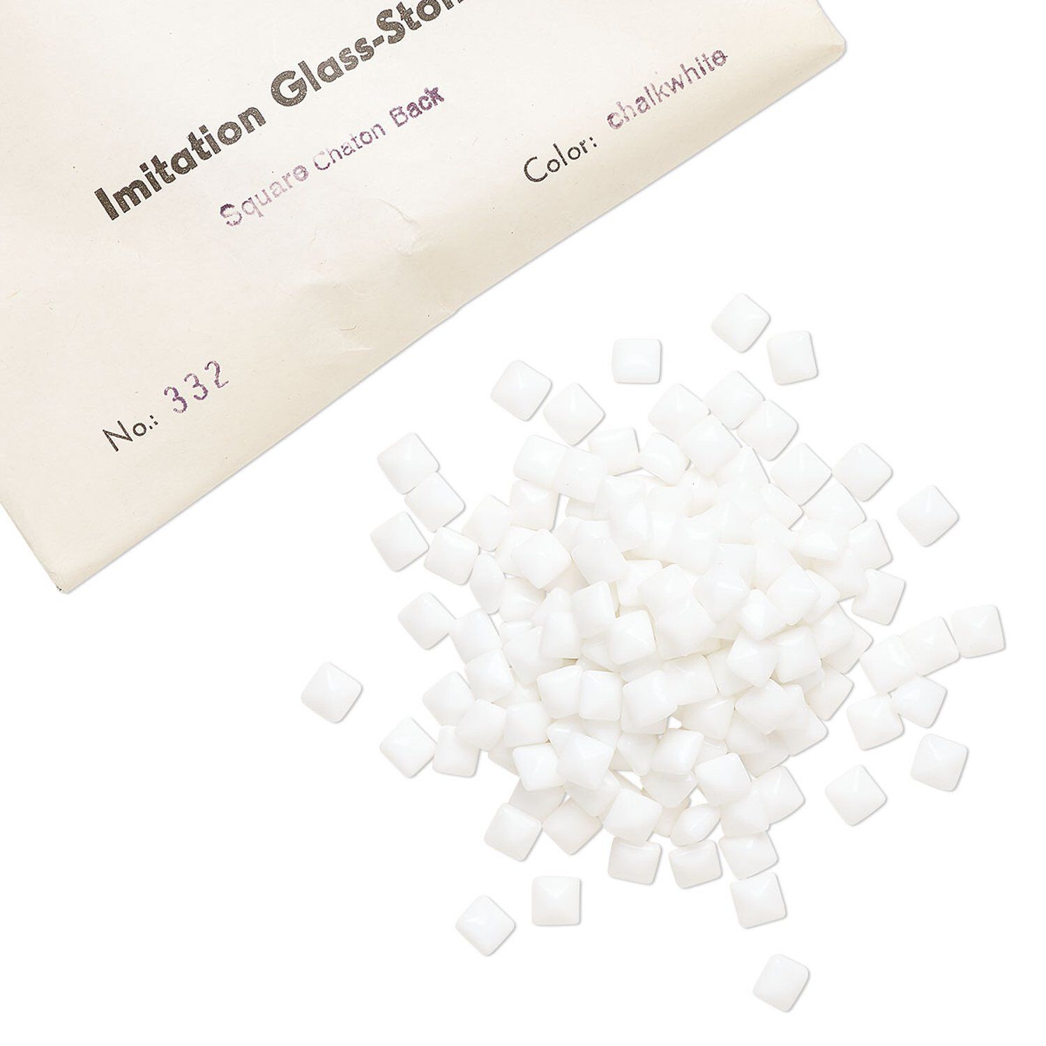 Embellishment, vintage glass, chalkwhite, 6mm faceted square fancy stone. Sold per pkg of 288 (2 gross).