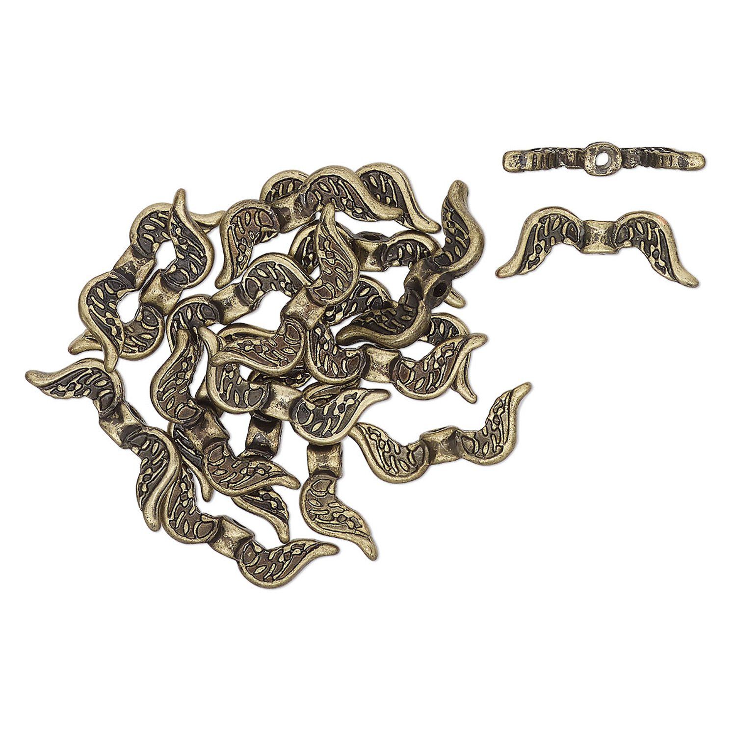 Bead, antique brass-finished "pewter" (zinc-based alloy), 21x4mm angel wing. Sold per pkg of 20.
